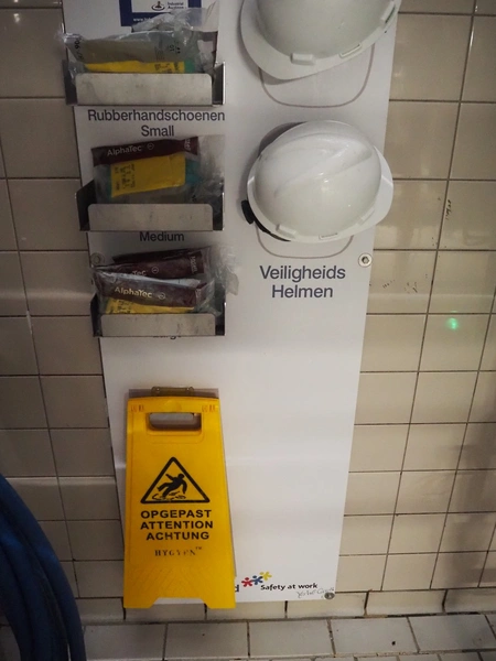 Wooden frame with safety equipment, dimensions: 600 mm x 2080 mm.