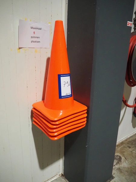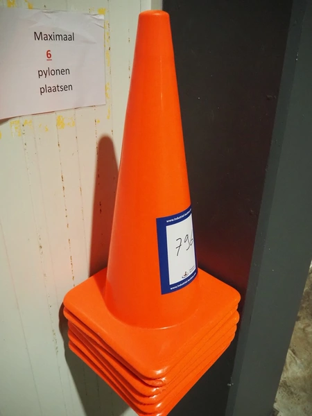 6 plastic pylons, dimensions: (6x) 380 mm x 380 mm x 700 mm.