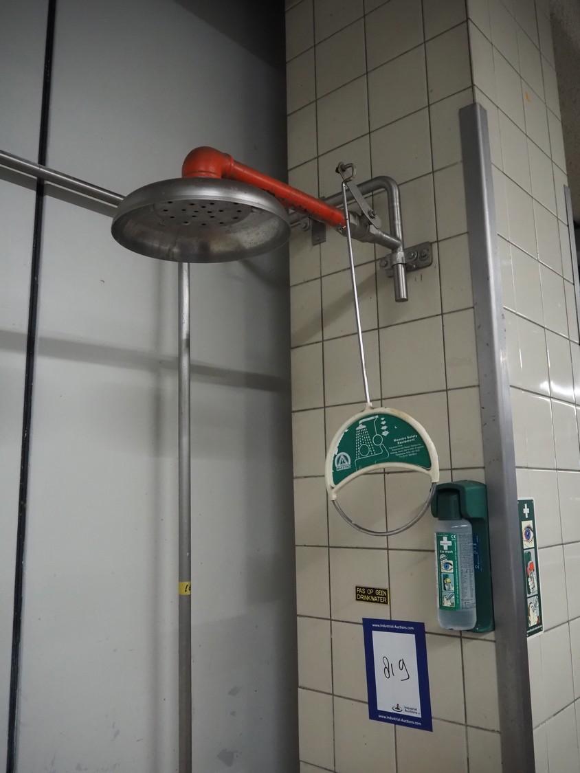 Maestro eye wash station with shower, sink with eye shower and eye shower bottle.