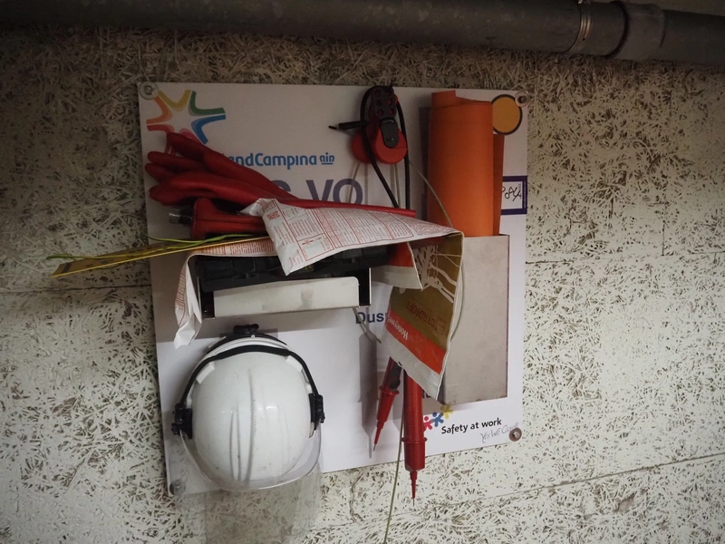 Wall plate with safety equipment, dimensions: 700 mm x 700 mm.