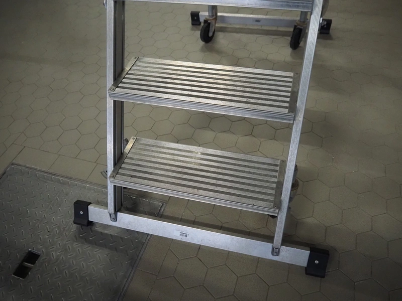 LSC aluminium stairs, working height: 1220 mm, total dimensions: 1650 mm x 900 mm x 2240 mm.