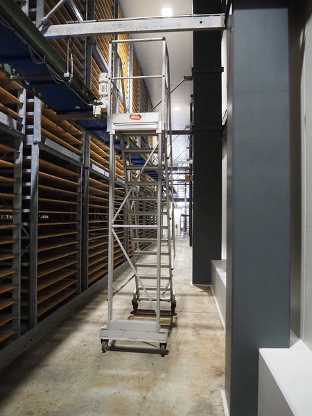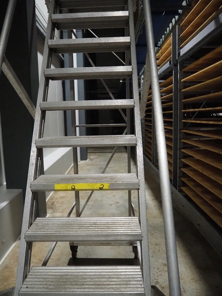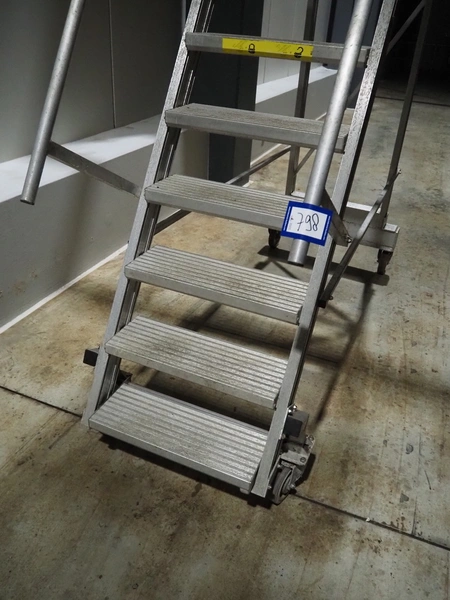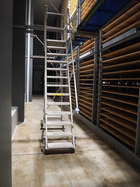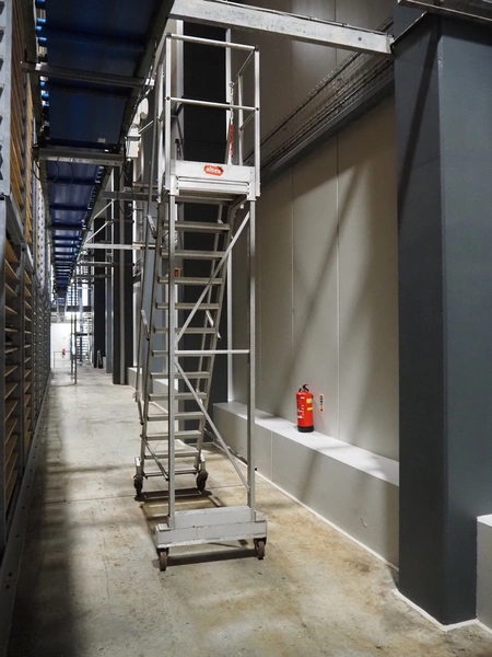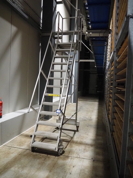 Altrex mobile aluminium stairs, working height: 3000 mm, total dimensions: 2400 mm x 850 mm x 4100 mm.