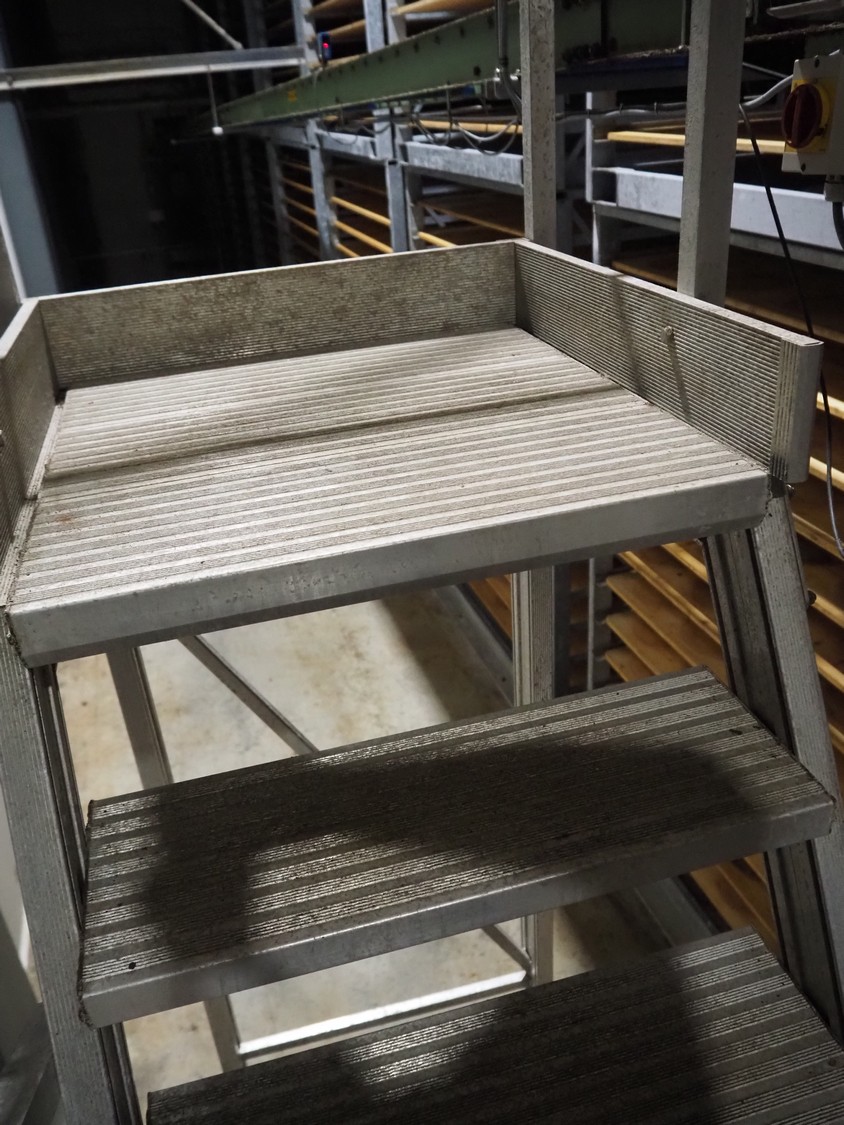 Altrex mobile aluminium stairs, working height: 3000 mm, total dimensions: 2400 mm x 850 mm x 4100 mm.
