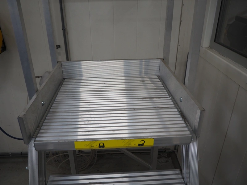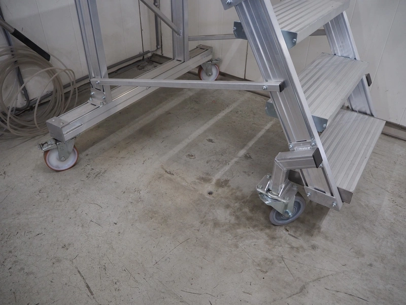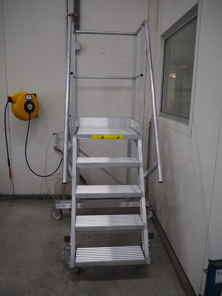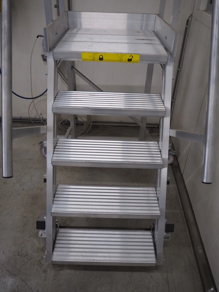 Altrex mobile aluminium stairs, platform height: 1200 mm, total dimensions: 1350 mm x 750 mm x 2300 mm.