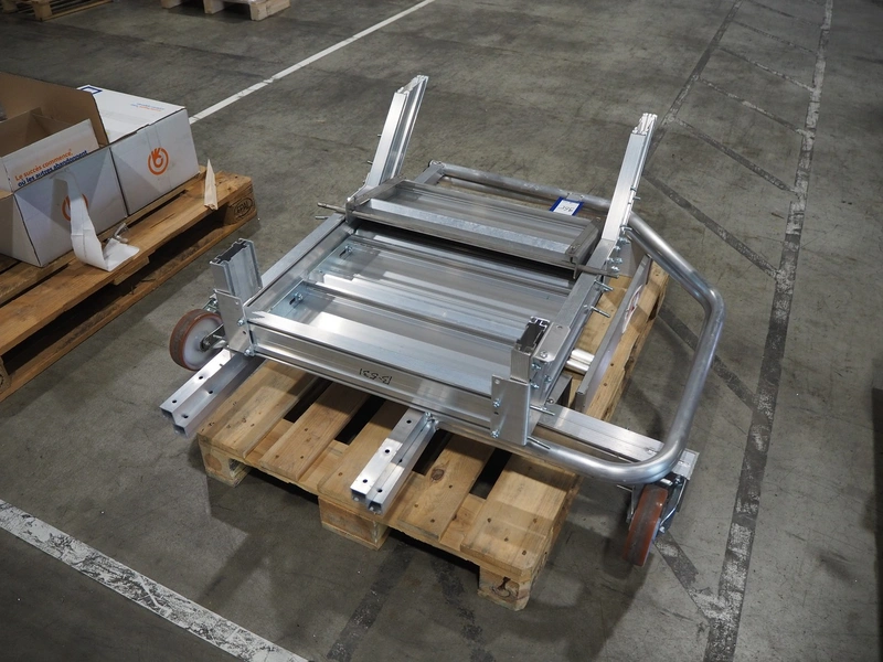 Pallet with Altrex mobile aluminium stairs, dimensions: 1200 mm x 1200 mm x 620 mm.