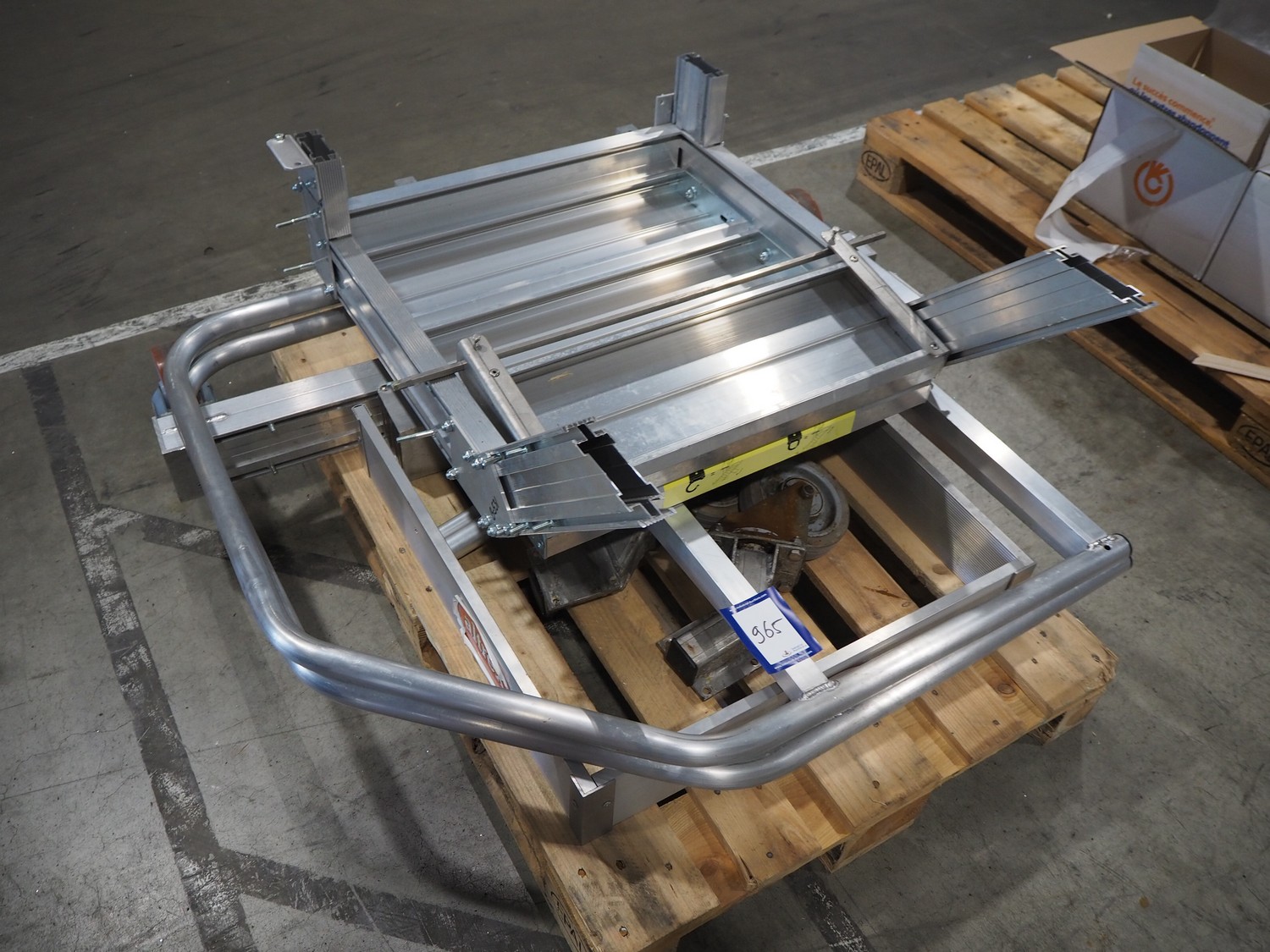 Pallet with Altrex mobile aluminium stairs, dimensions: 1200 mm x 1200 mm x 620 mm.