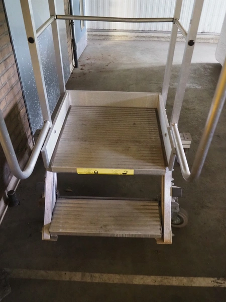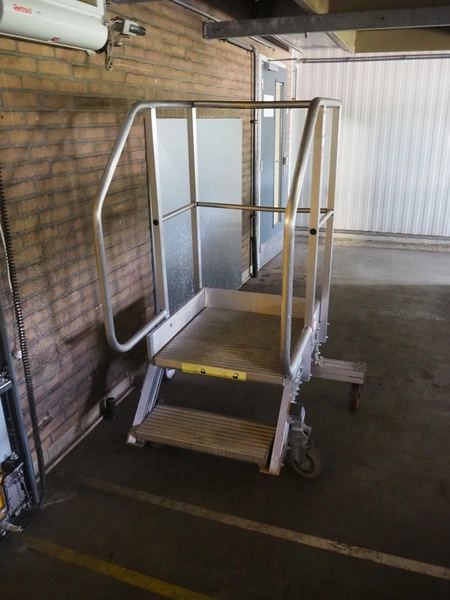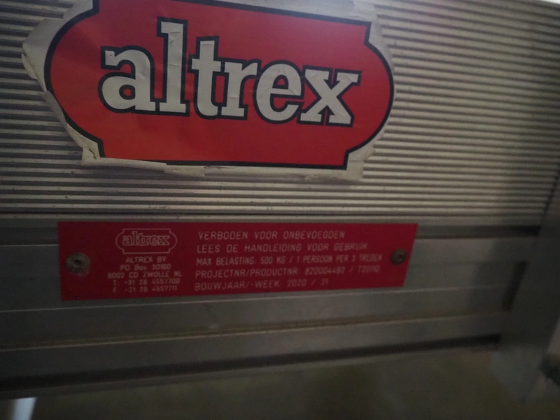 Altrex mobile aluminium stairs, year of construction: 2020/31, capacity: 500 kg, platform height: 450 mm, total dimensions: 1000 mm x 1300 mm x 1600 mm.