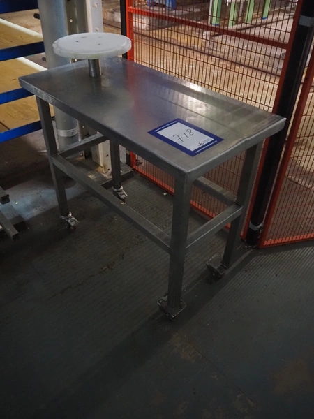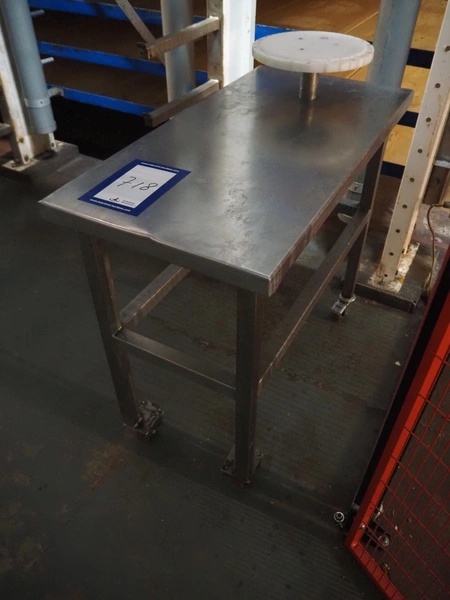 Mobile s/s table, dimensions: 1000 mm x 500 mm x 880 mm.