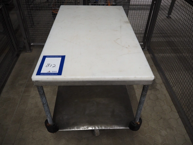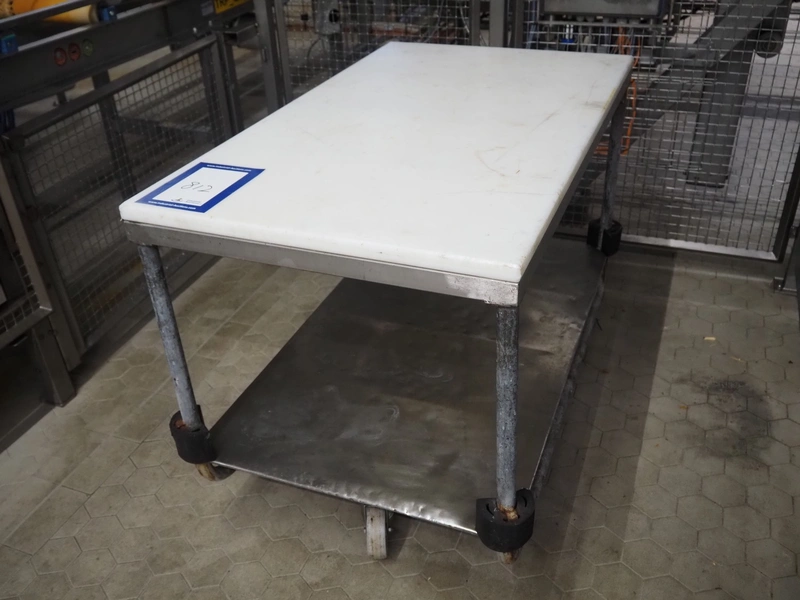 Mobile table, s/s frame, plastic top, dimensions: 1200 mm x 700 mm x 880 mm.