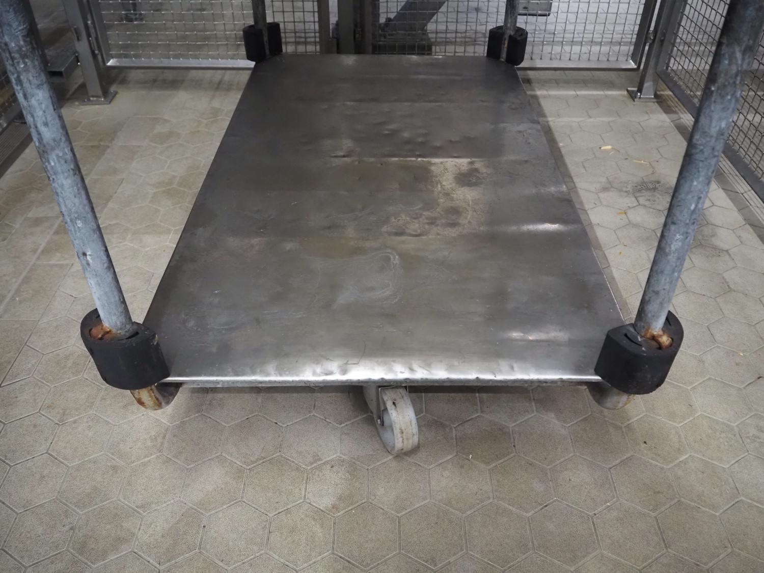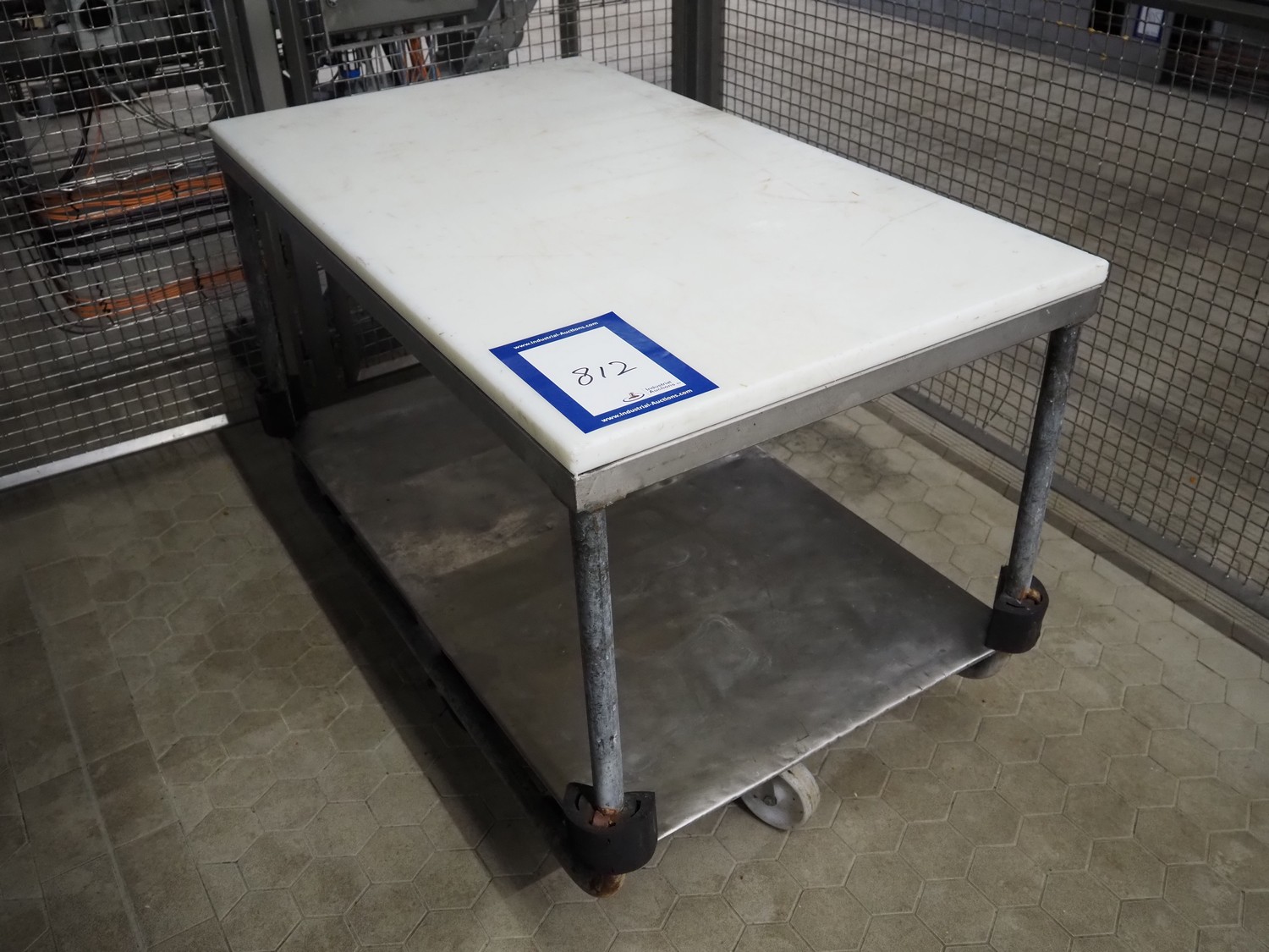 Mobile table, s/s frame, plastic top, dimensions: 1200 mm x 700 mm x 880 mm.