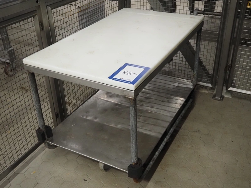 Mobile table, s/s frame, plastic top, dimensions: 1200 mm x 700 mm x 880 mm.