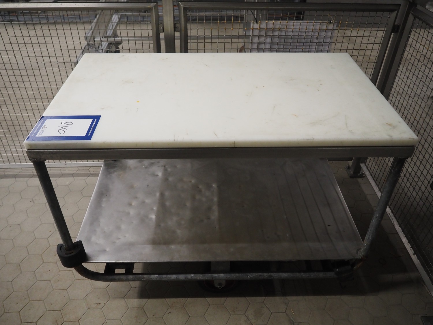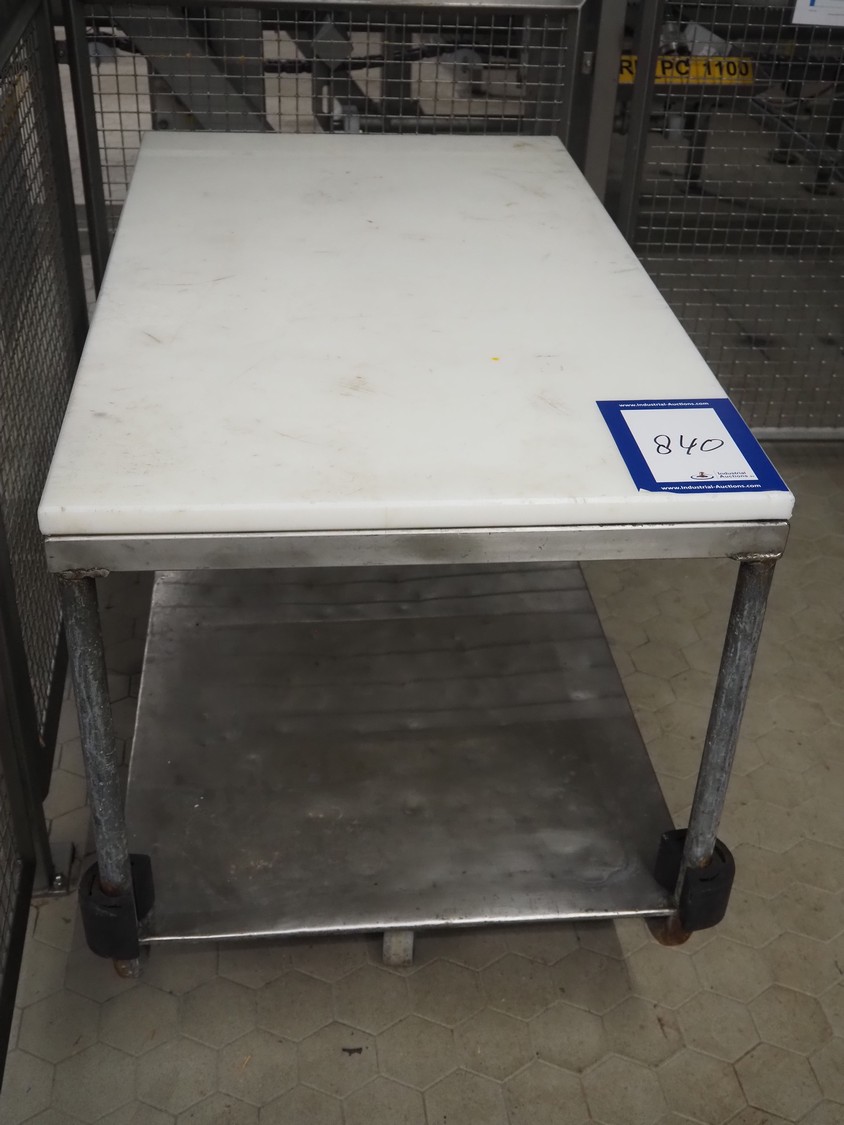 Mobile table, s/s frame, plastic top, dimensions: 1200 mm x 700 mm x 880 mm.