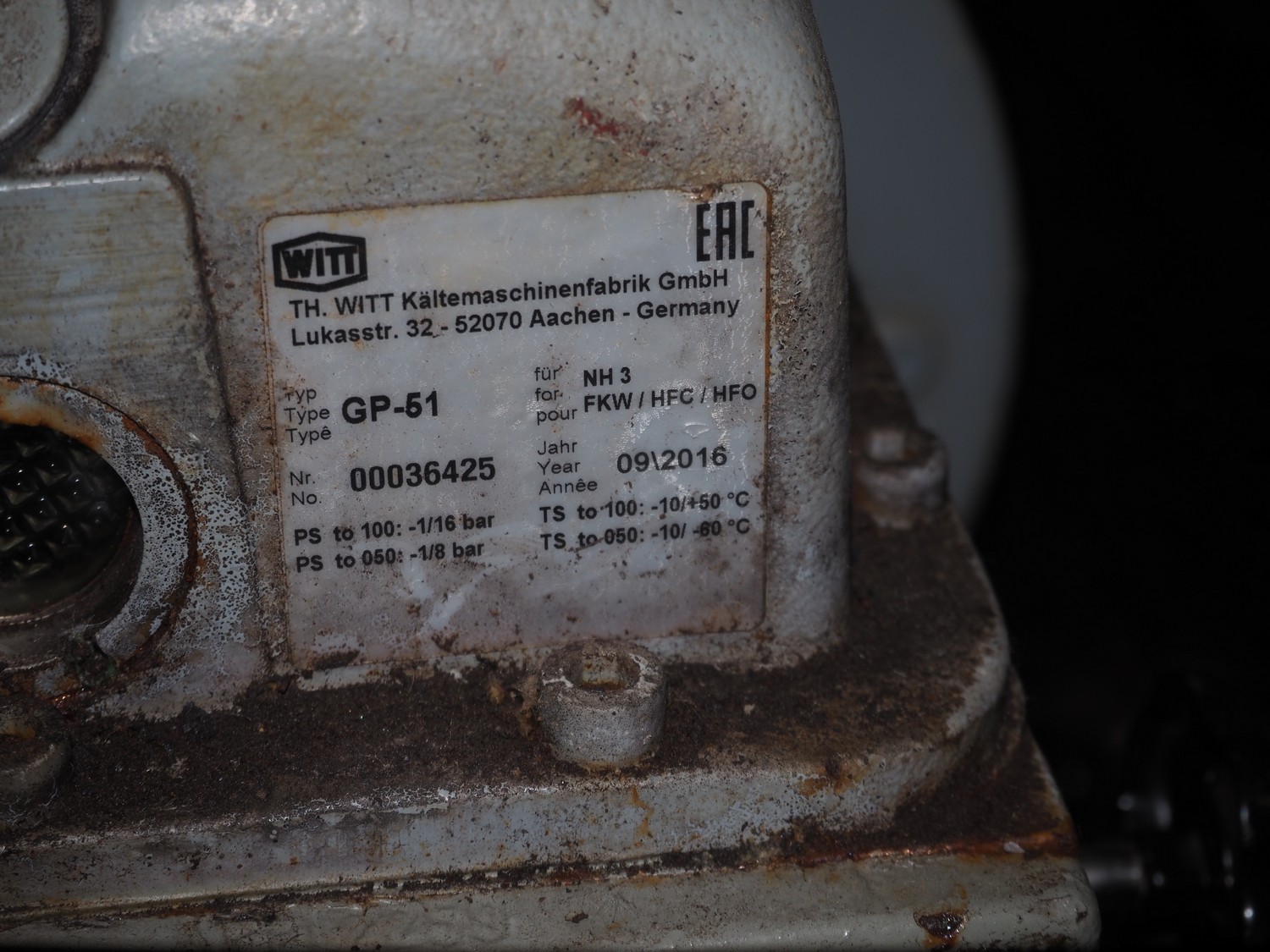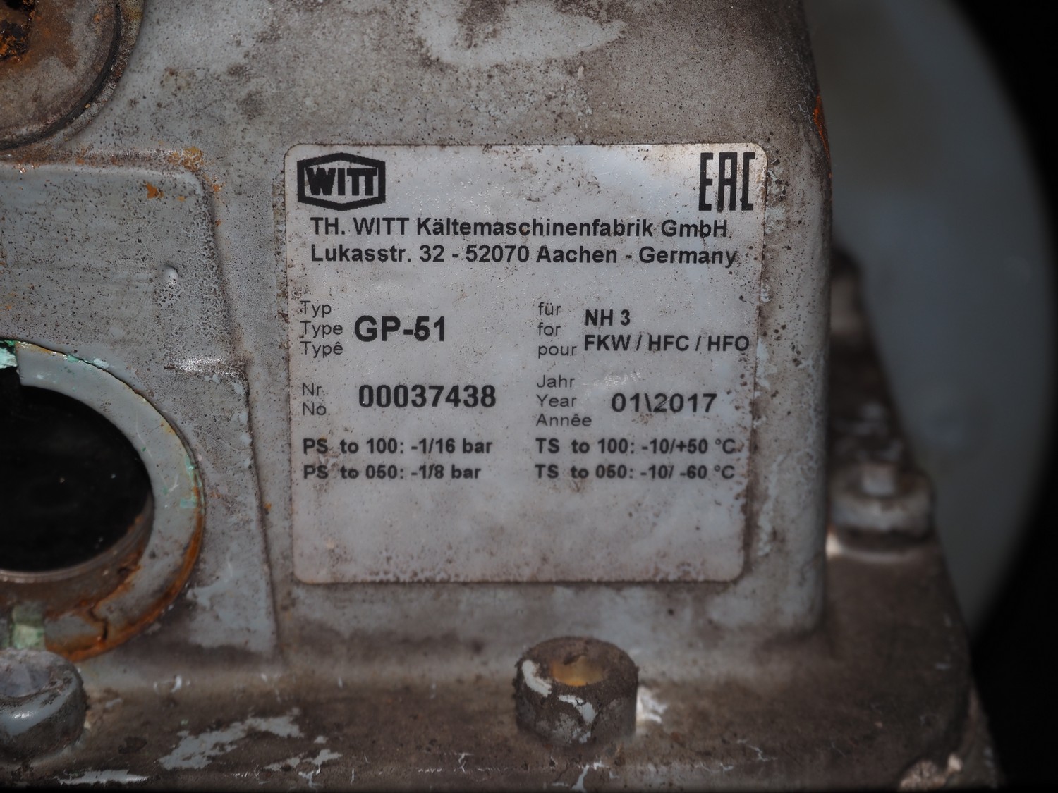 TH. WITT Kältemachinenfabrik GmbH ammonia tank with 2 refrigerant pumps, type pumps: (2x) GP-51, dimensions: 3000 mm x 2000 mm x 3700 mm.