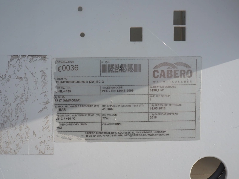 Cabero roof condenser, type: ACHAD109GB/4S-26 D (ZA) EC G, year of construction: 2018, refrigerant: R717, dimensions: 8600 mm x 1700 mm x 2250 mm.