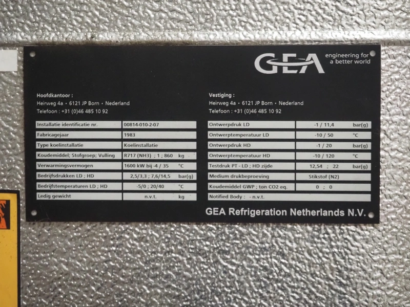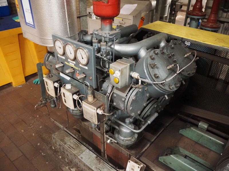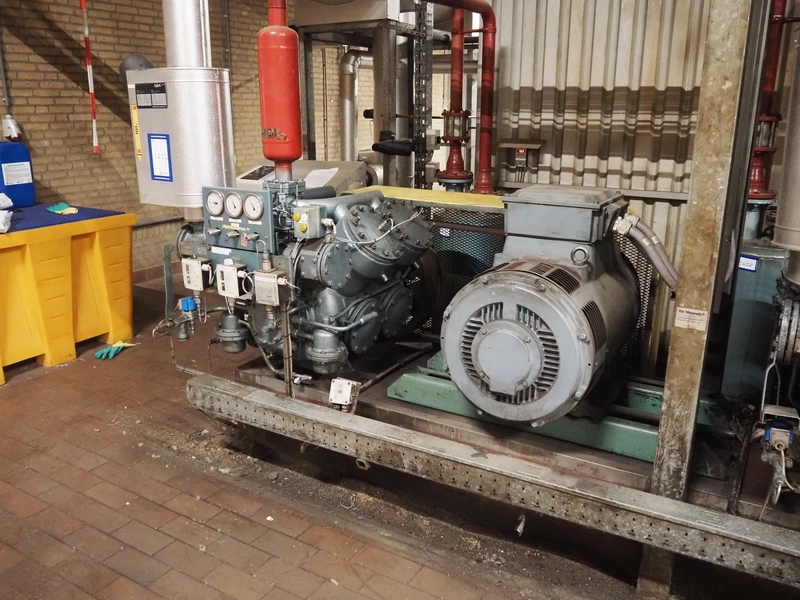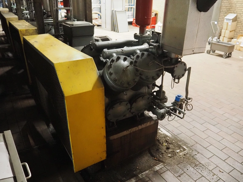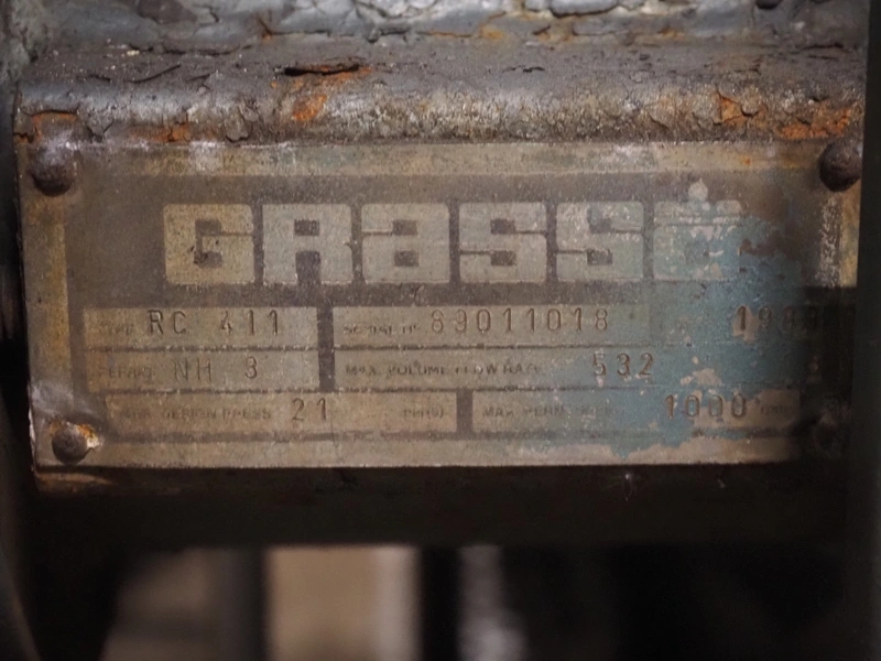 Grasso cooling compressor, type: RC 411, serial number: 89011018, year of construction: 1989, refrigerant: NH3, dimensions: 1400 mm x 2300 mm x 1500 mm.