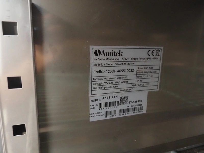 Amitek refrigerator, model: AK1414TN, year of construction: 2018, dimensions: 850 mm x 1470 mm x 2000 mm.