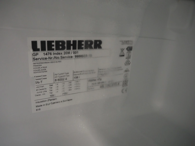 Liebherr freezer, type: GP 1476 Index 20M/001, dimensions: 700 mm x 600 mm x 860 mm.