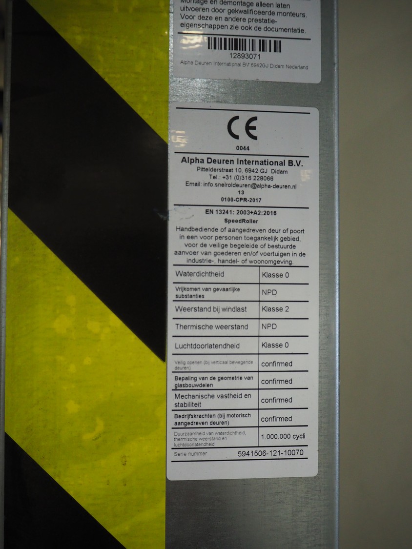 Alpha Deuren International B.V. high speed shutter door, dimensions: 2500 mm x 2800 mm.