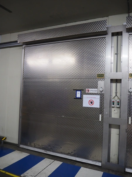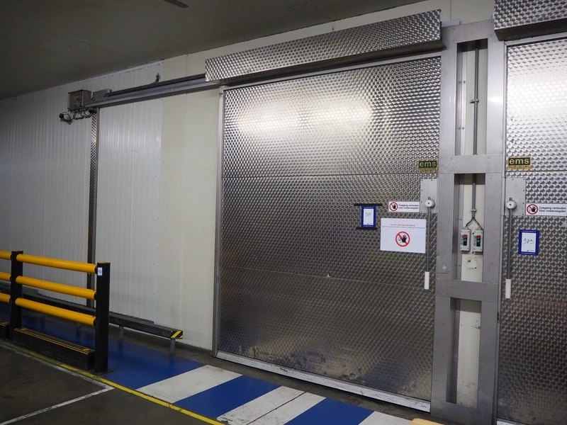 EMS Isosystems electric refrigeration sliding doors, dimensions door: 2600 mm x 3150 mm, length rail: 5300 mm.