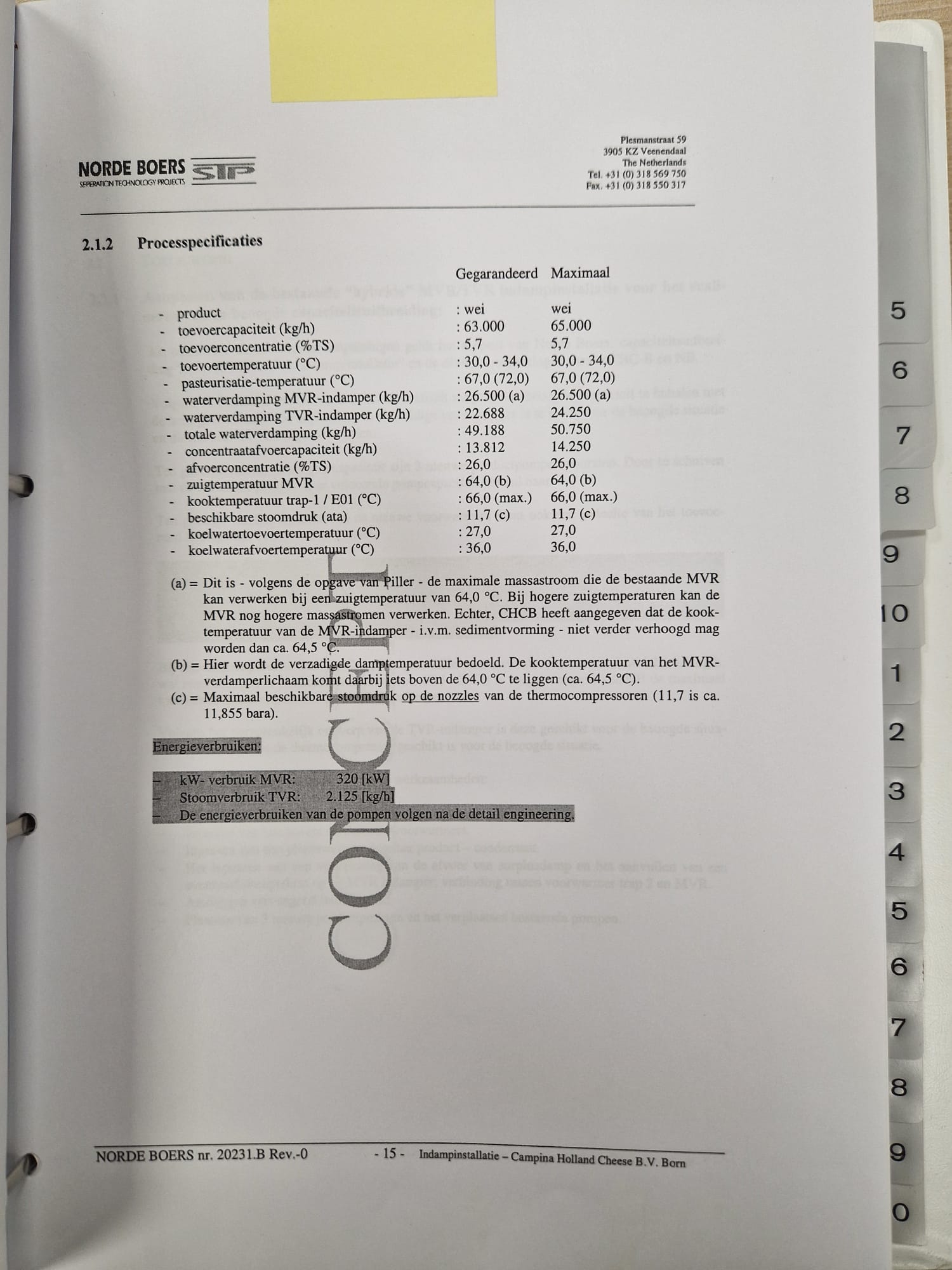 - Water evaporation MVR evaporator (kg/h): 26.500 (a)