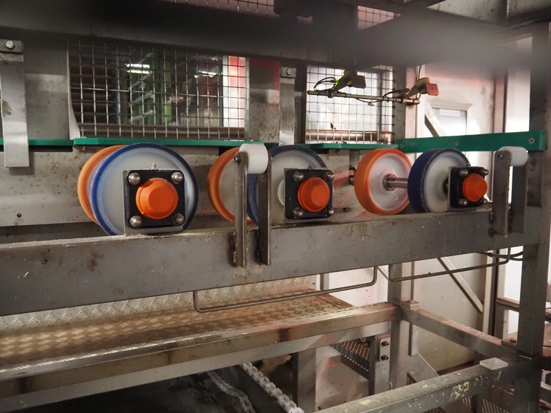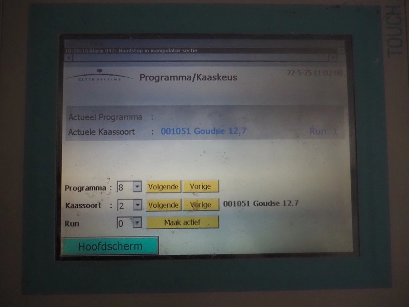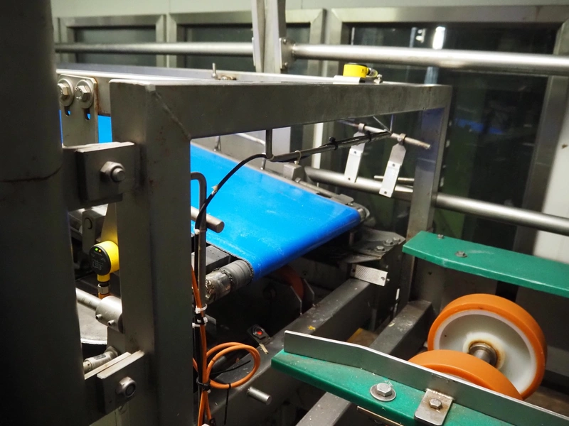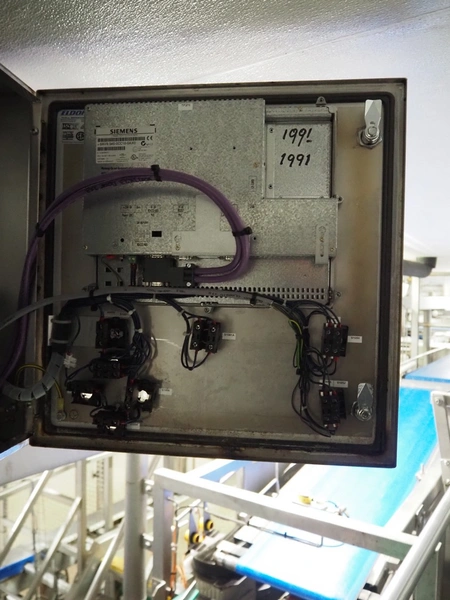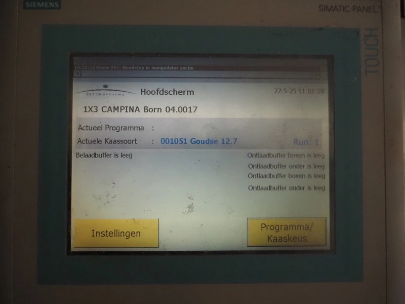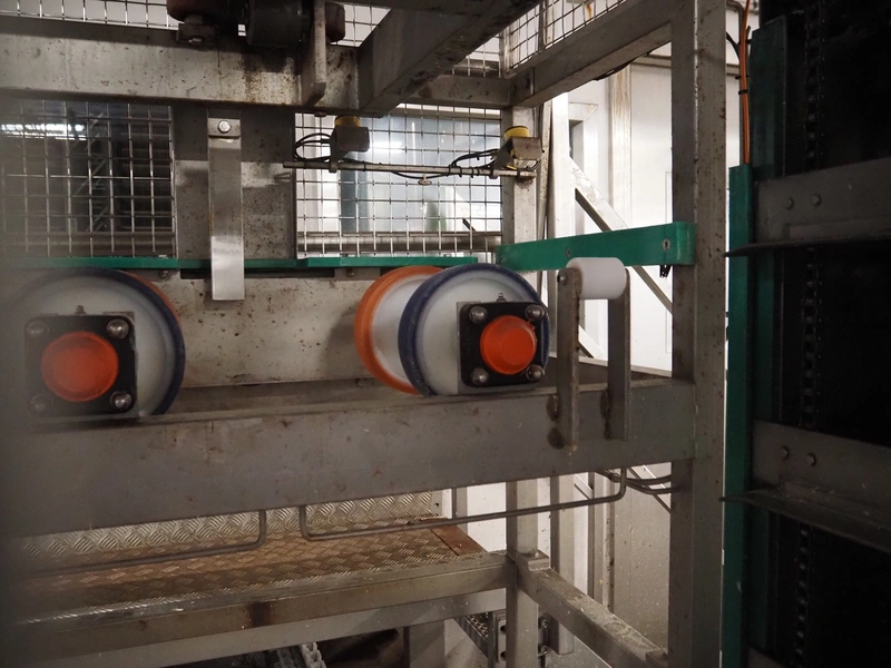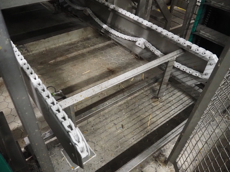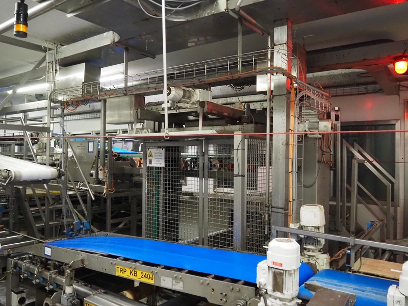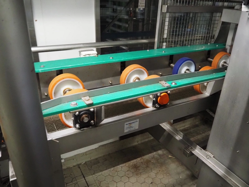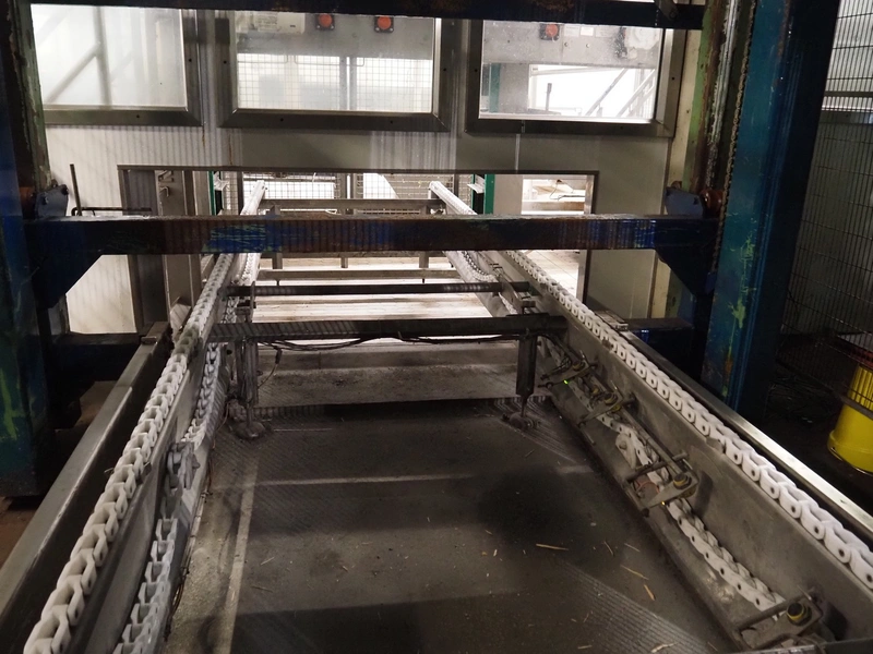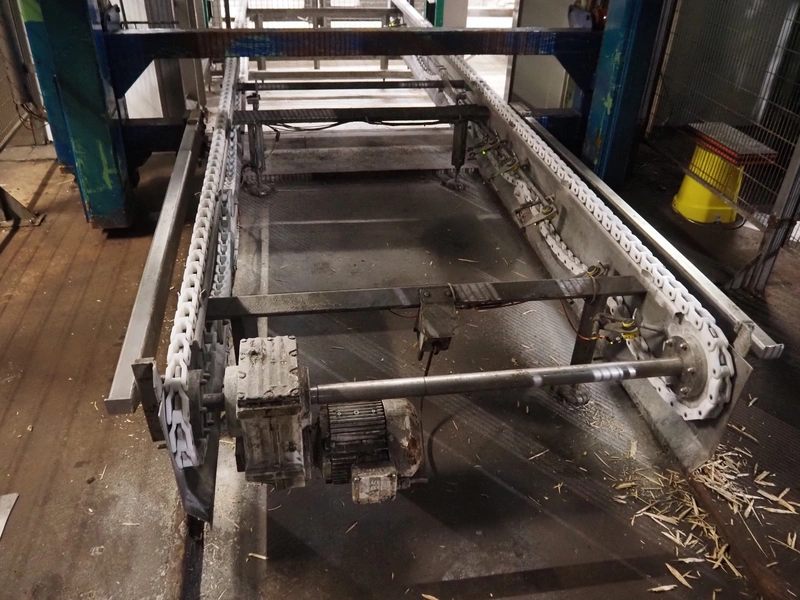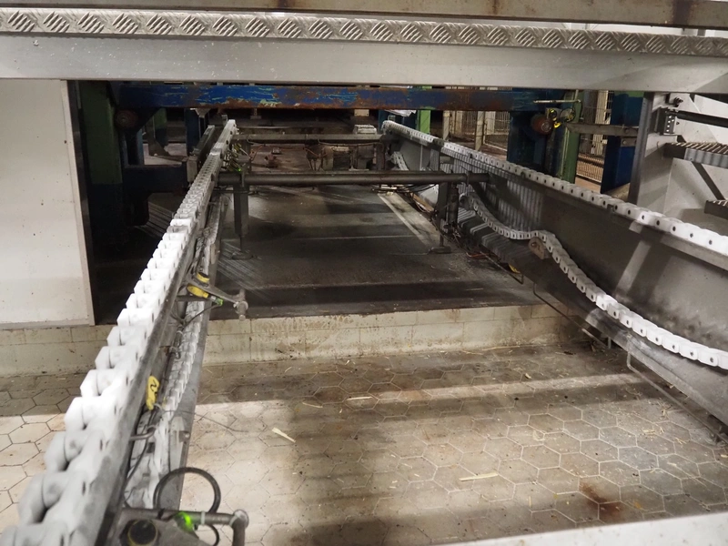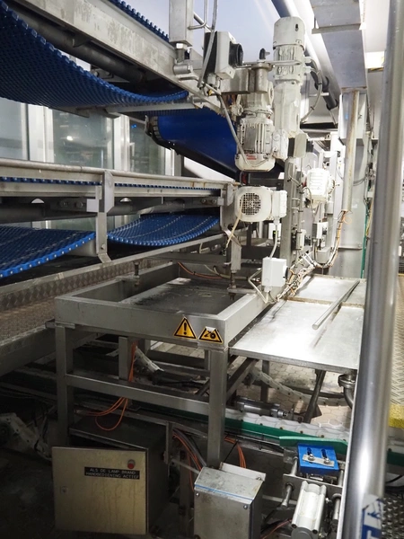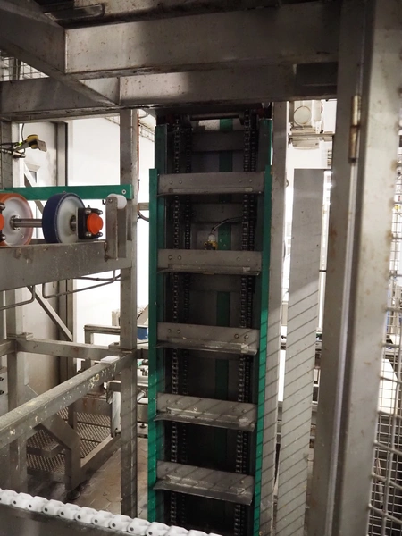 S/s cheese board loader, dimensions each floor: 1760 mm x 360 mm, distance between floors: 260 mm, total dimensions: 2250 mm x 2100 mm x 2200 mm, including chain conveyor, distance between chains: 1200 mm, total dimensions 5000 mm x 1620 mm x 750 mm and Elten Systems cheese loading conveyor, belt width: 400 mm, total dimensions: 3700 mm x 1100 mm x 2600 mm.