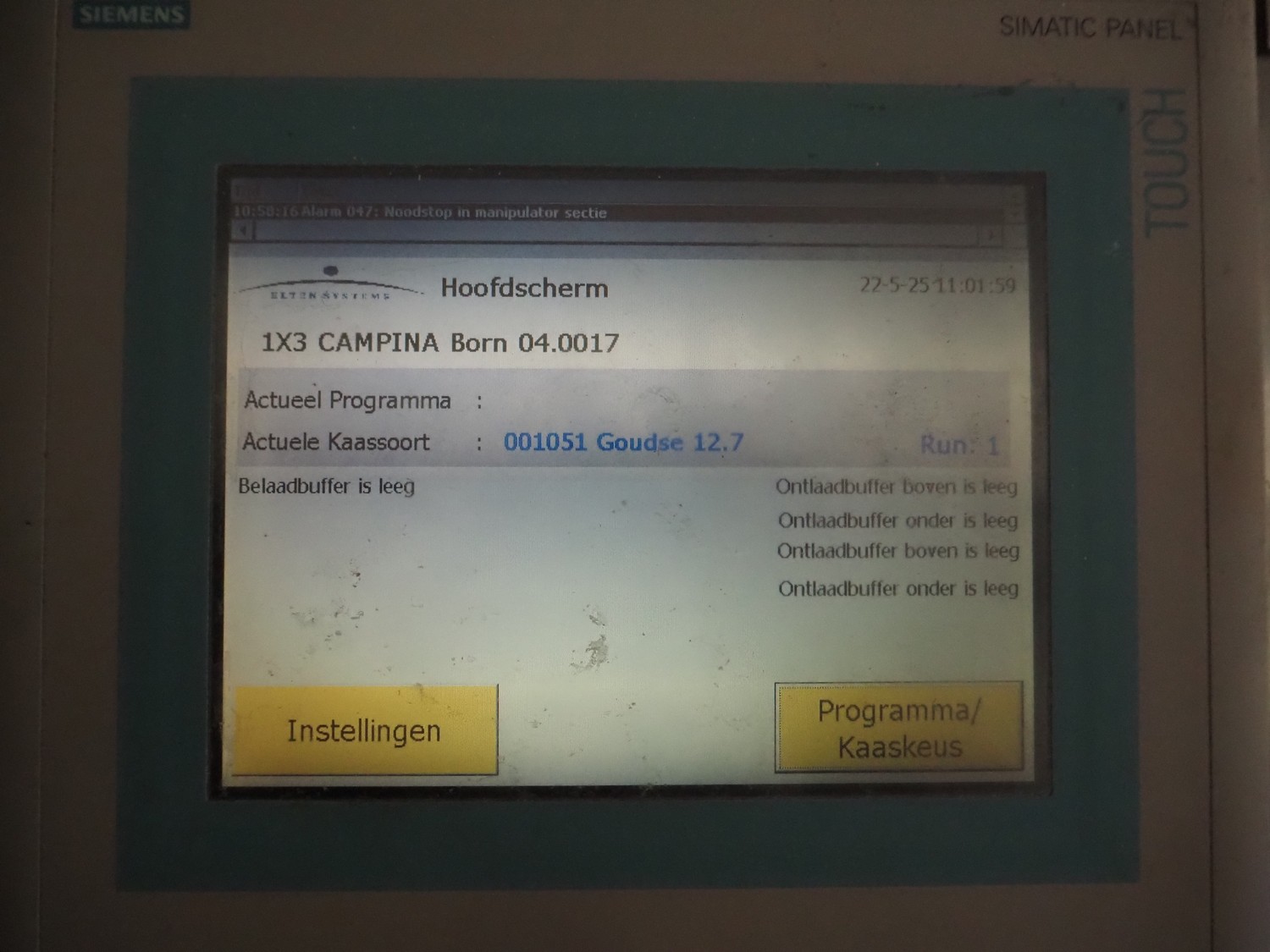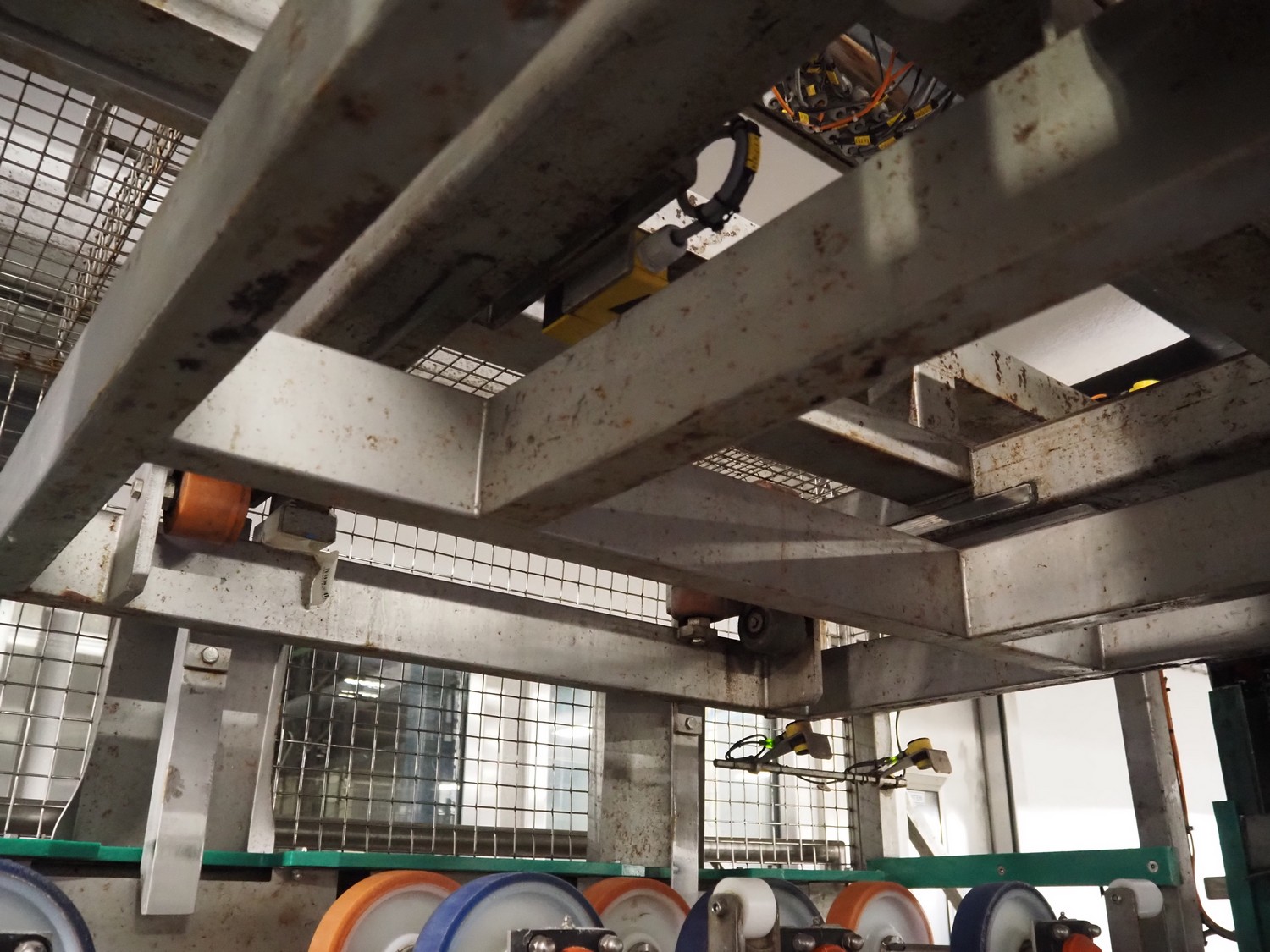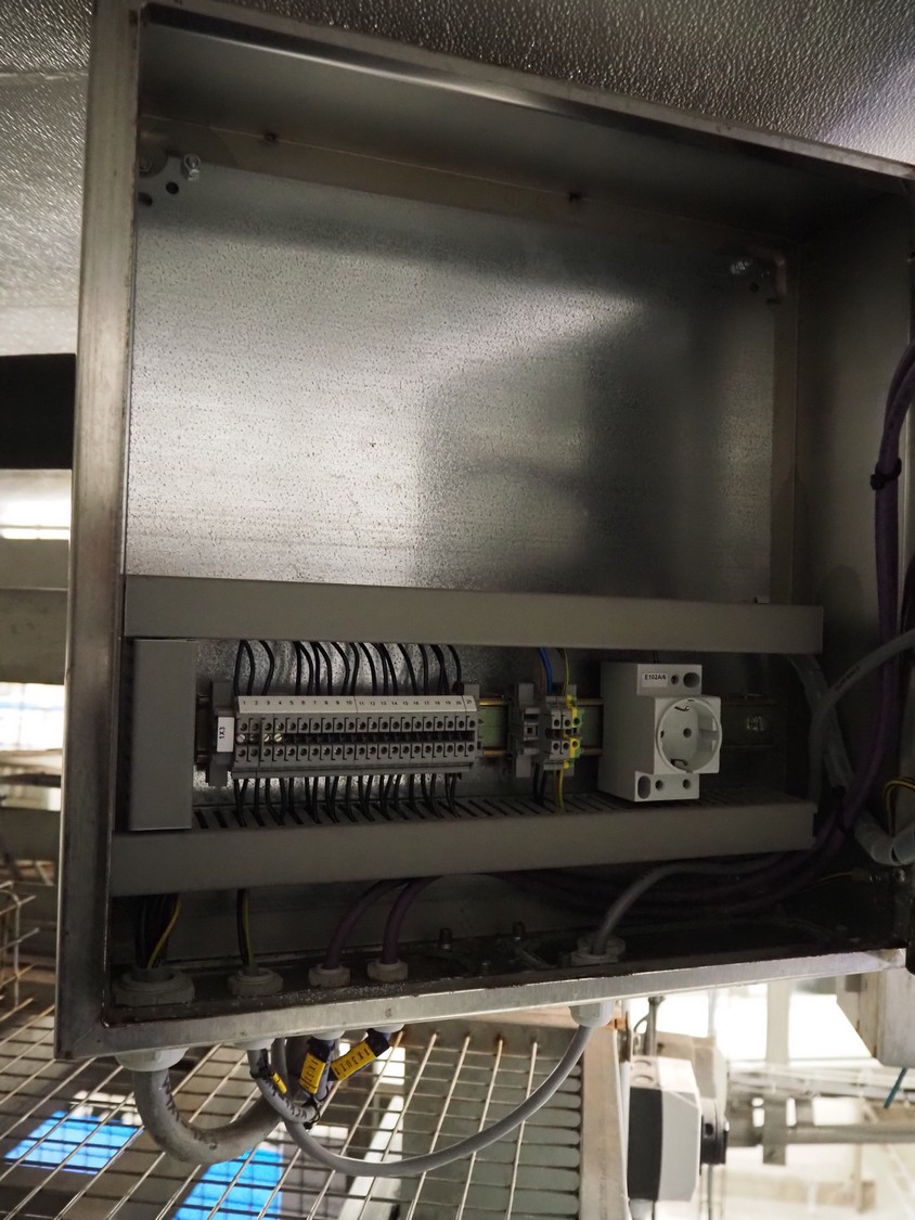 S/s cheese board loader, dimensions each floor: 1760 mm x 360 mm, distance between floors: 260 mm, total dimensions: 2250 mm x 2100 mm x 2200 mm, including chain conveyor, distance between chains: 1200 mm, total dimensions 5000 mm x 1620 mm x 750 mm and Elten Systems cheese loading conveyor, belt width: 400 mm, total dimensions: 3700 mm x 1100 mm x 2600 mm.