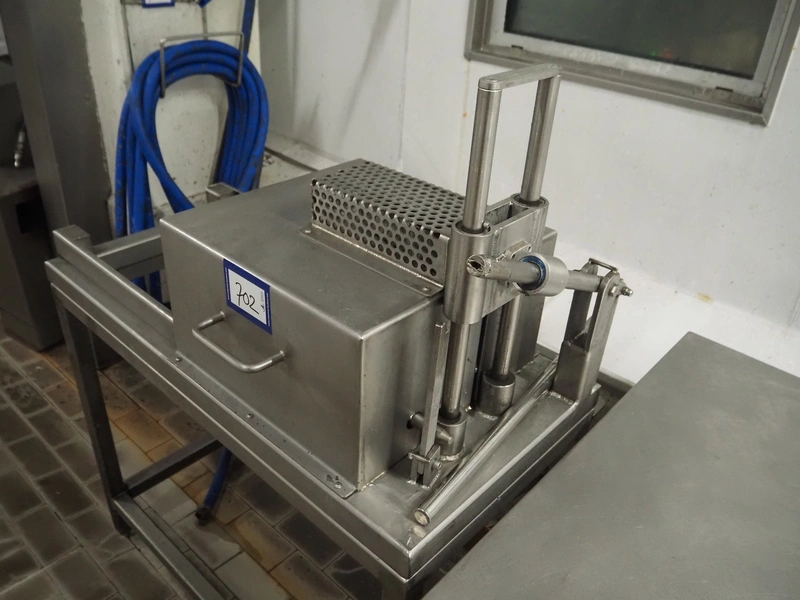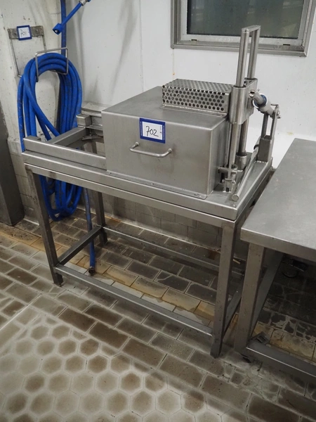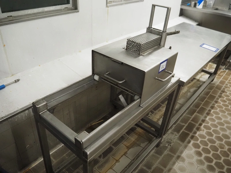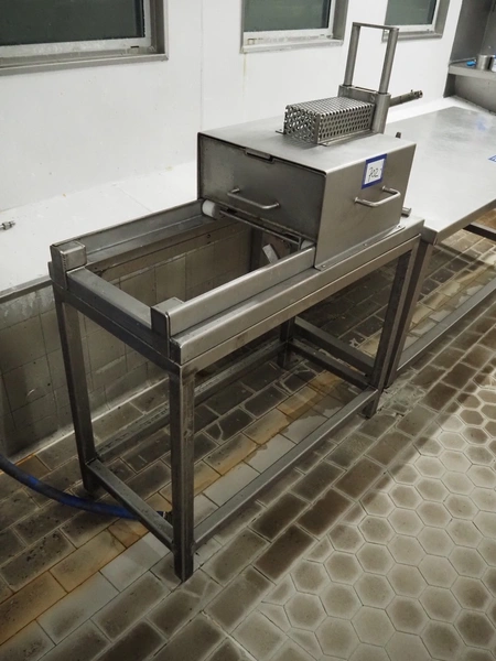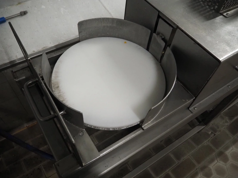 Mobile s/s cheese cutter, max diameter cheese: 370 mm, total dimensions: 1000 mm x 1000 mm x 1400 mm.