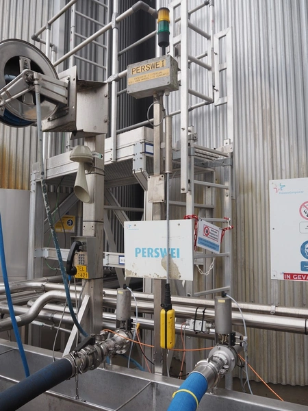 Unloading station, dimensions: 700 mm x 8100 mm x 2450 mm.