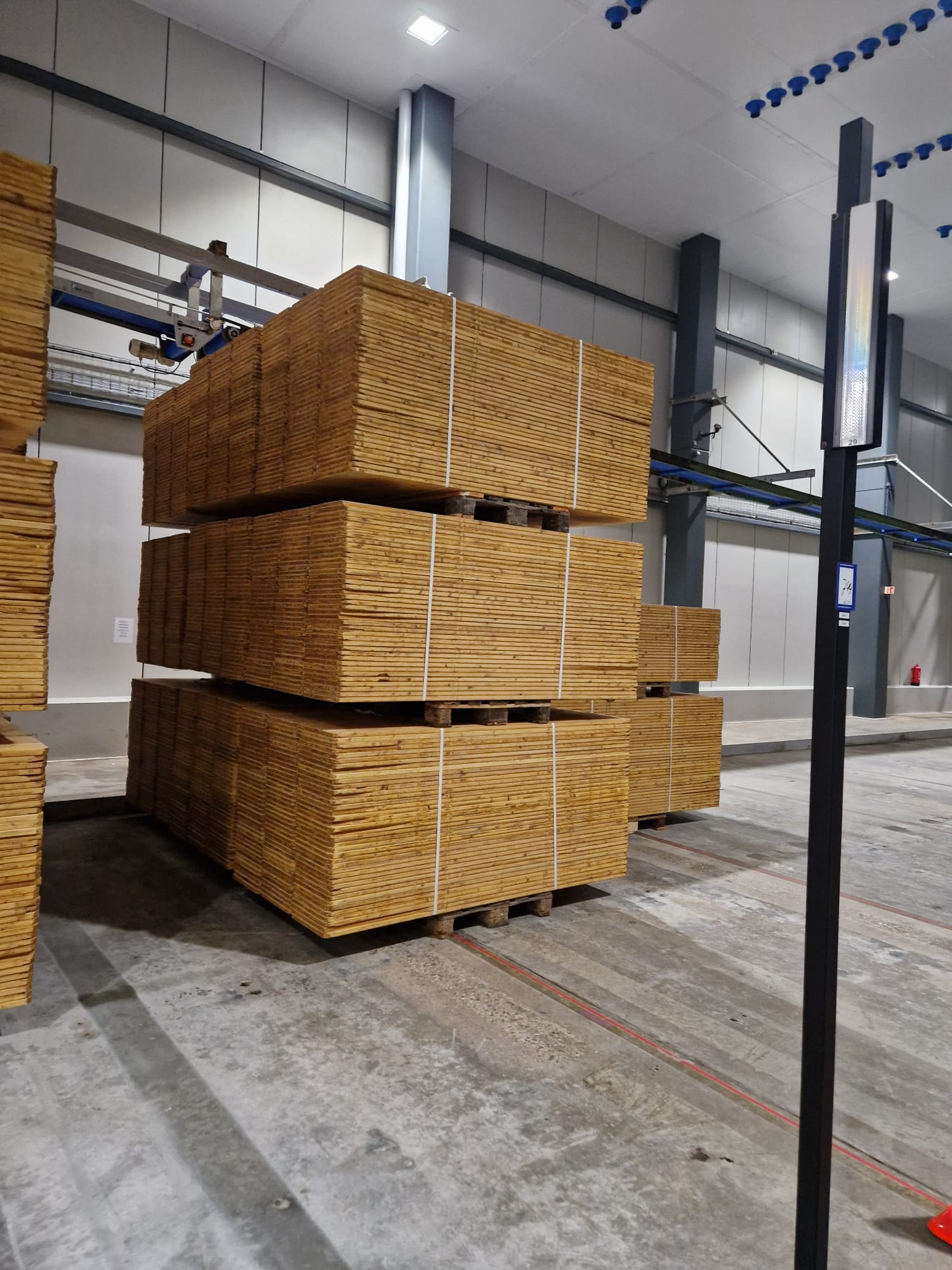 Approximately 42 pallets with wooden boards, approximately 108 wooden boards on each pallet, dimensions each board: 2100 mm x 385 mm x 25 mm, weight each pallet: 1150 kg, dimensions each board: 2100 mm x 385 mm x 25 mm, northern european whitewood. May not be used for cheese purposes.