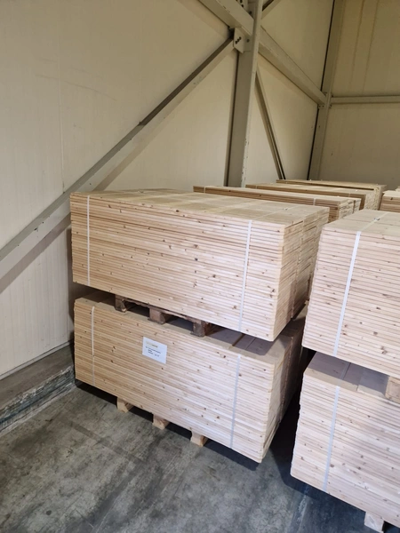 Approximately 26 pallets with wooden boards, approximately 102 wooden boards on each pallet, dimensions each board: 1700 mm x 405 mm x 20 mm, weight each pallet: 680 kg, northern european whitewood. New. May not be used for cheese purposes.