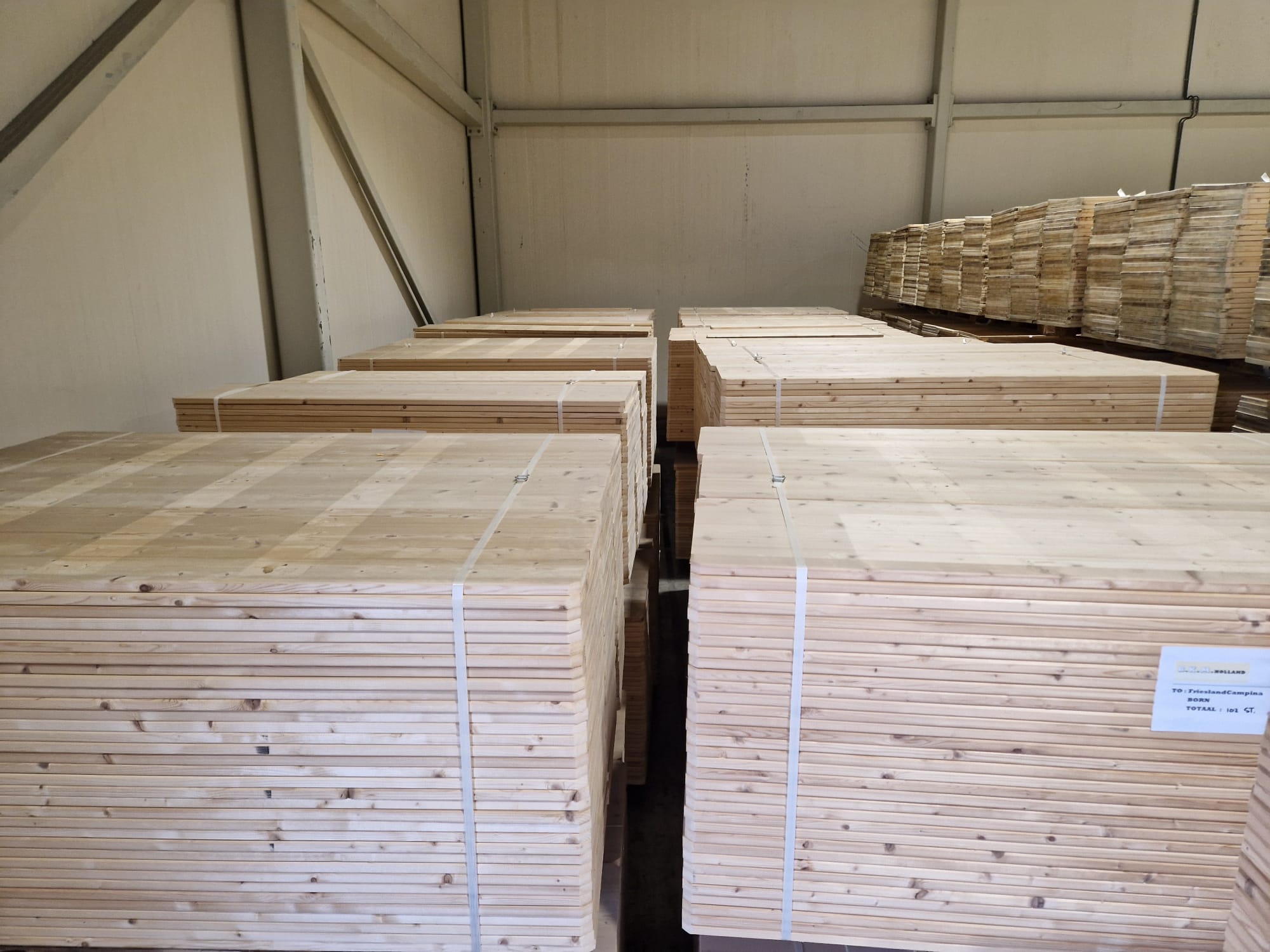 Approximately 26 pallets with wooden boards, approximately 102 wooden boards on each pallet, dimensions each board: 1700 mm x 405 mm x 20 mm, weight each pallet: 680 kg, northern european whitewood. New. May not be used for cheese purposes.