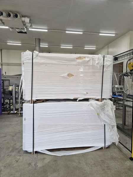 3 pallets with wooden boards, approximately 102 wooden boards on each pallet, dimensions each board: 2100 mm x 385 mm x 25 mm, weight each pallet: 1150 kg, northern european whitewood. New. May not be used for cheese purposes.