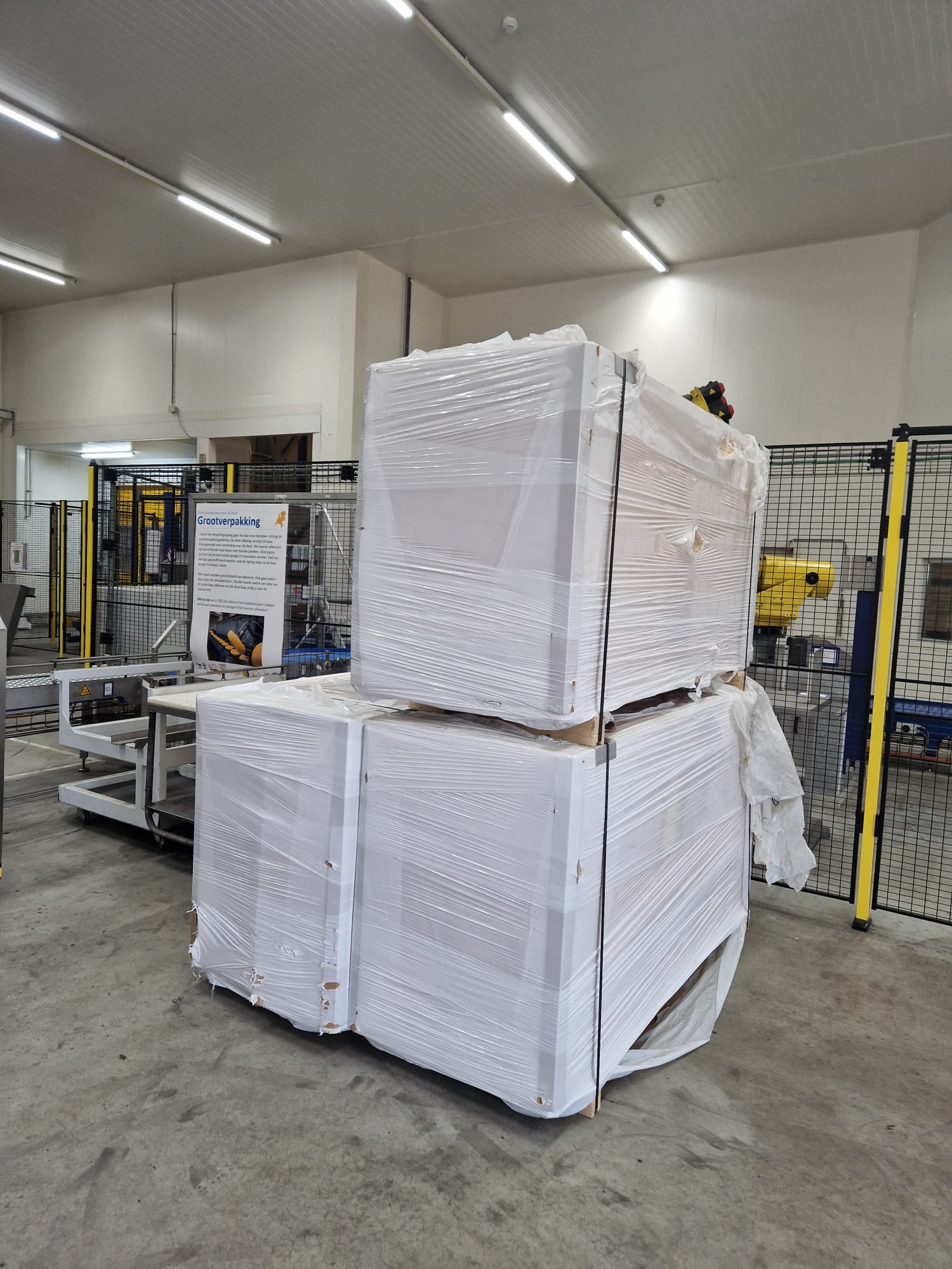 3 pallets with wooden boards, approximately 102 wooden boards on each pallet, dimensions each board: 2100 mm x 385 mm x 25 mm, weight each pallet: 1150 kg, northern european whitewood. New. May not be used for cheese purposes.