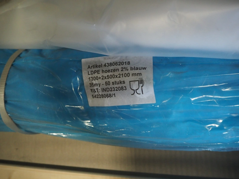 Pallet with 2 rolls of LDPE bags, dimensions bags: 1300 + 2x500x2100 mm, 35my, dimensions: 1300 mm x 800 mm x 250 mm.