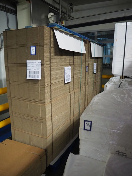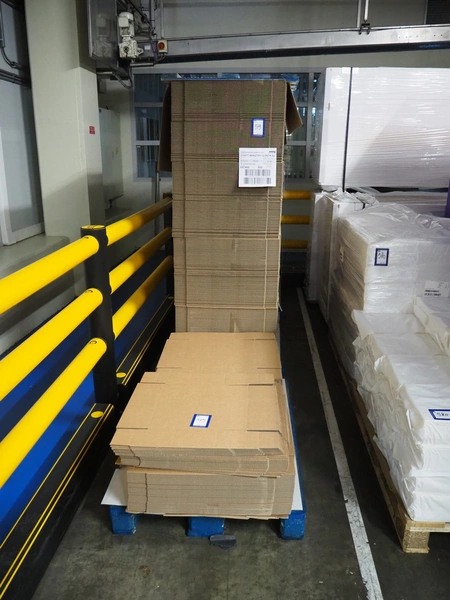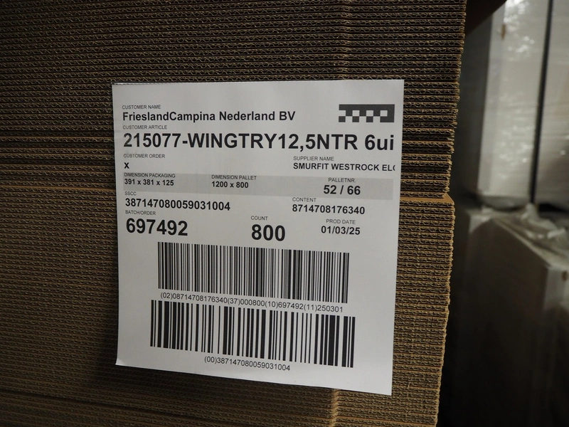 3 pallets with Smurfit Westrock boxes, dimensions each box: 391 mm x 381 mm x 125 mm, total dimensions: (2x) 1200 mm x 800 mm x 1950 mm and (1x) 1200 mm x 800 mm x 400 mm.