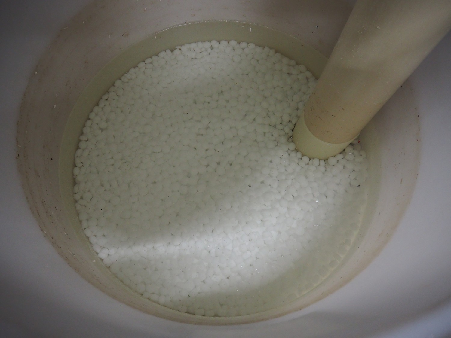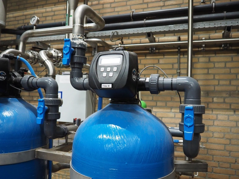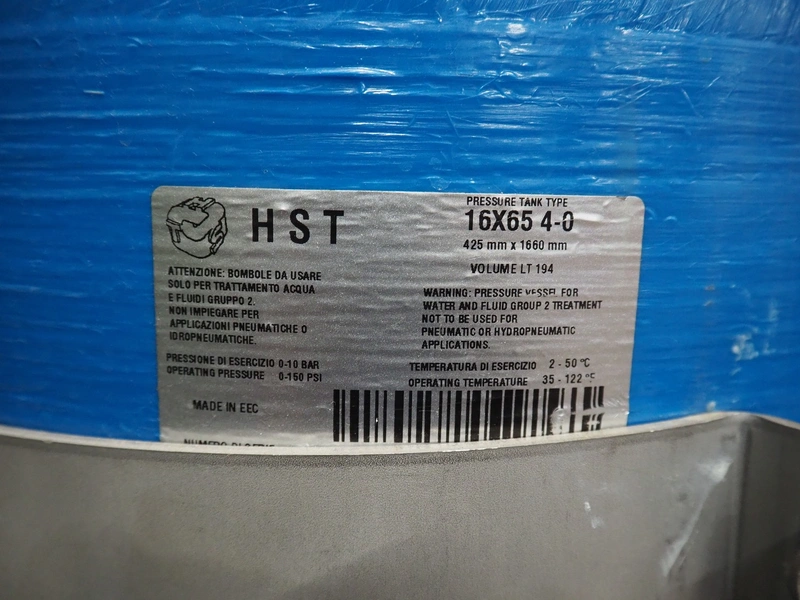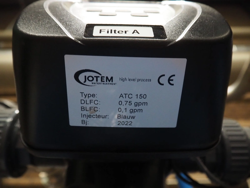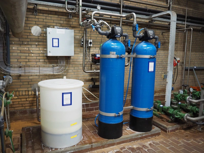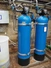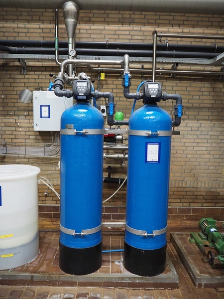 Jotem water softener installation consisting 2 HST polyethylene cylinders, dimensions: (2x) 400 mm x 1850 mm and plastic tub for salt bricks, dimensions: ø 700 mm x 975 mm.