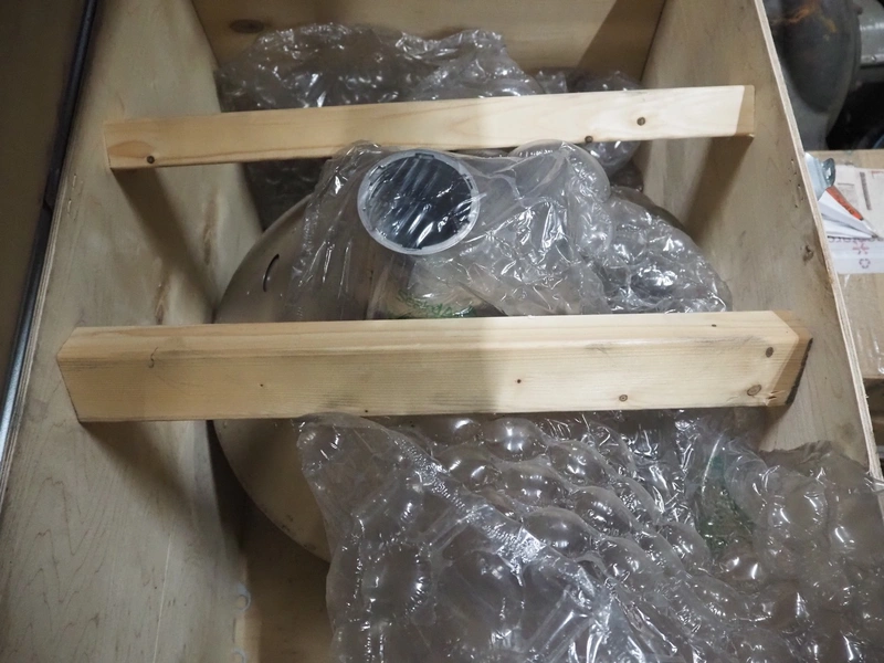 Wooden crate with s/s discs for Tetra Pak separator, dimensions crate: 600 mm x 800 mm x 730 mm.