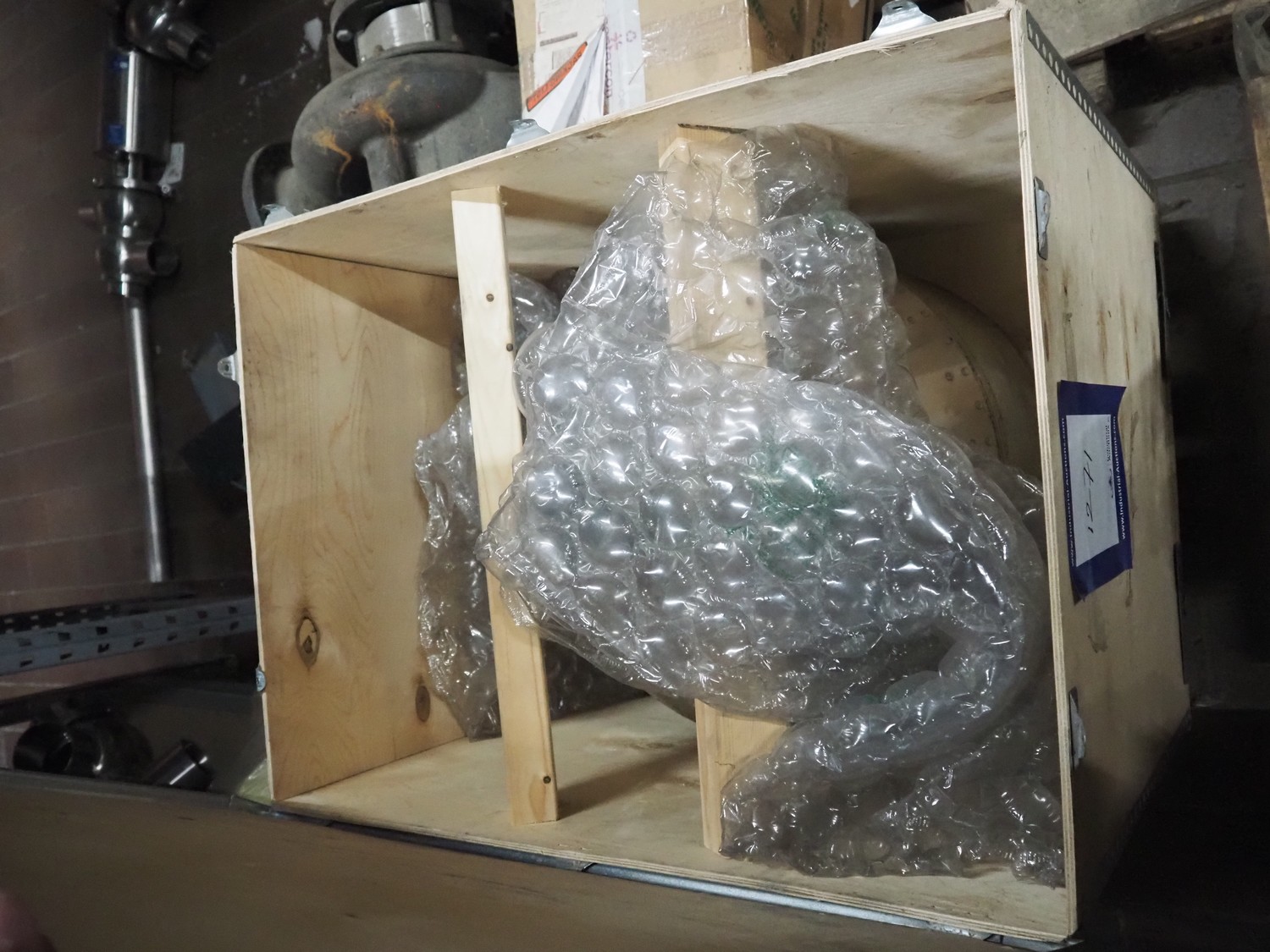 Wooden crate with s/s discs for Tetra Pak separator, dimensions crate: 600 mm x 800 mm x 730 mm.