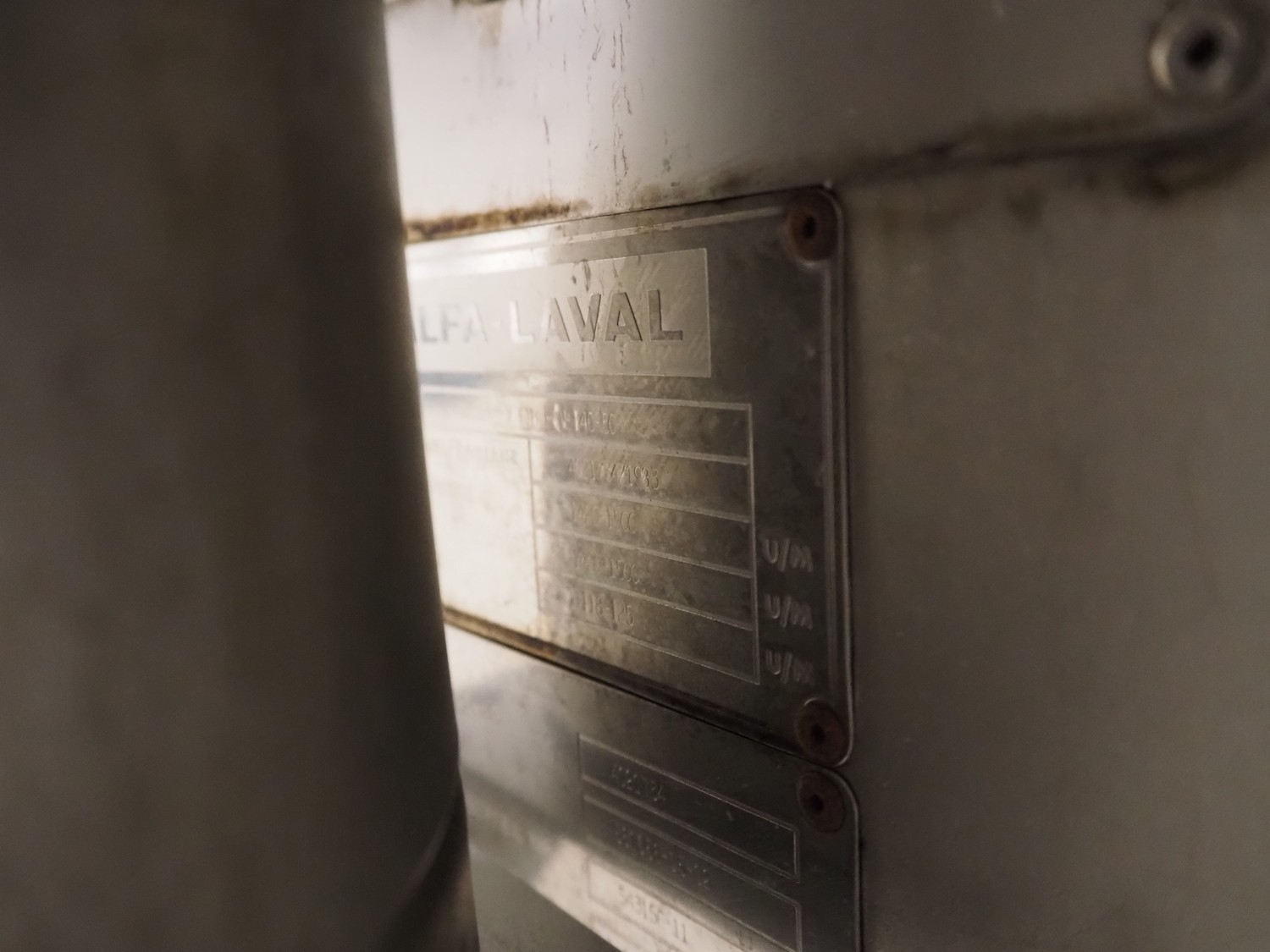 Alfa Laval bactofuge, dimensions: 1800 mm x 2000 mm x 1850 mm.