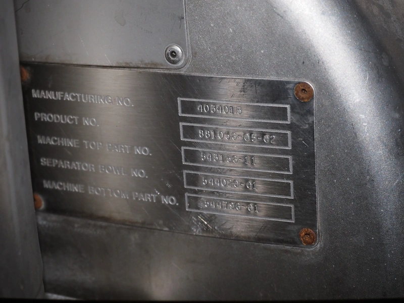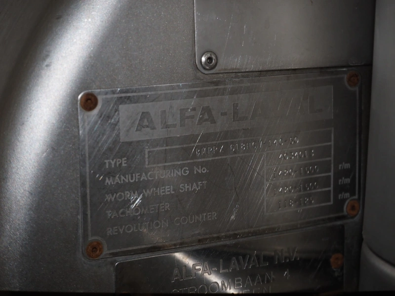 Alfa Laval bactofuge, type: BMRPX 618HCV-14C-50, serial number: 4034013, dimensions: 1800 mm x 2000 mm x 1850 mm. Without bowl.