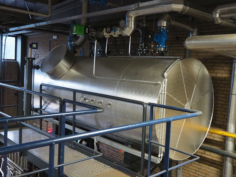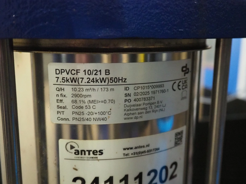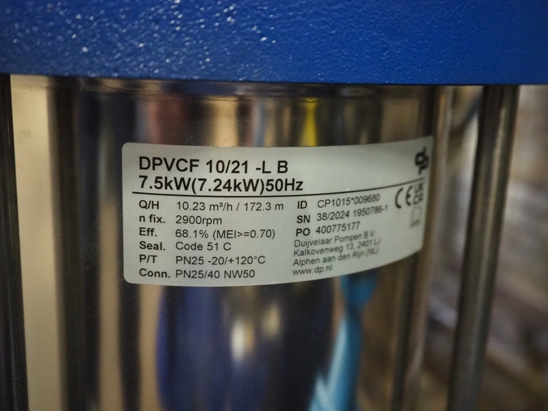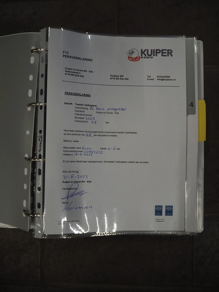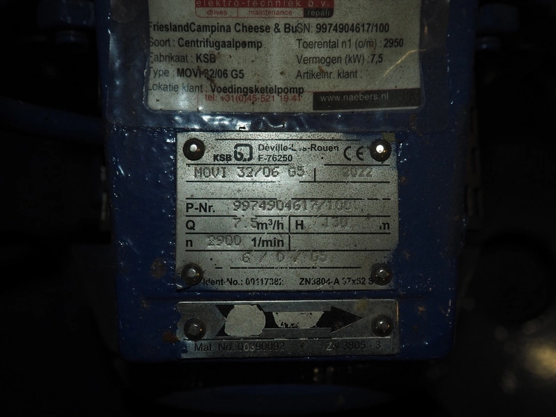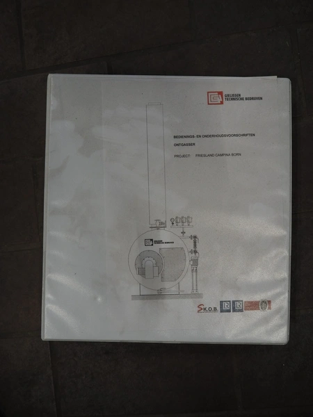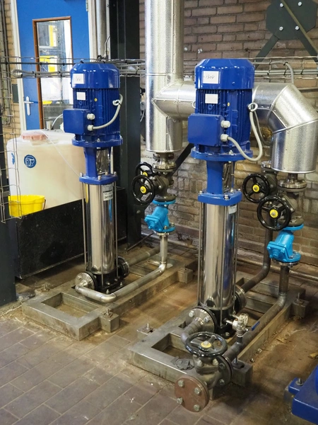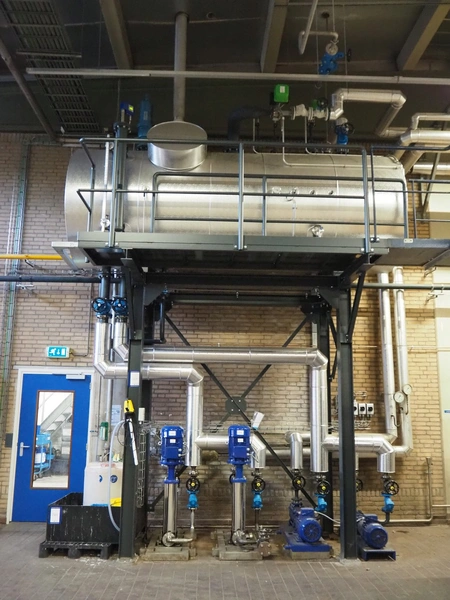 Gielissen degassing installation, year of construction: 2023, consisting of tank, dimensions: ø 1650 mm x 4300 mm, 2 Duijvelaar Pompen B.V. centrifugal pumps, type: DPVCF 10/21 B, 2 KSB refrigerant pumps, total dimensions: 4300 mm x 2500 mm x 5500 mm.