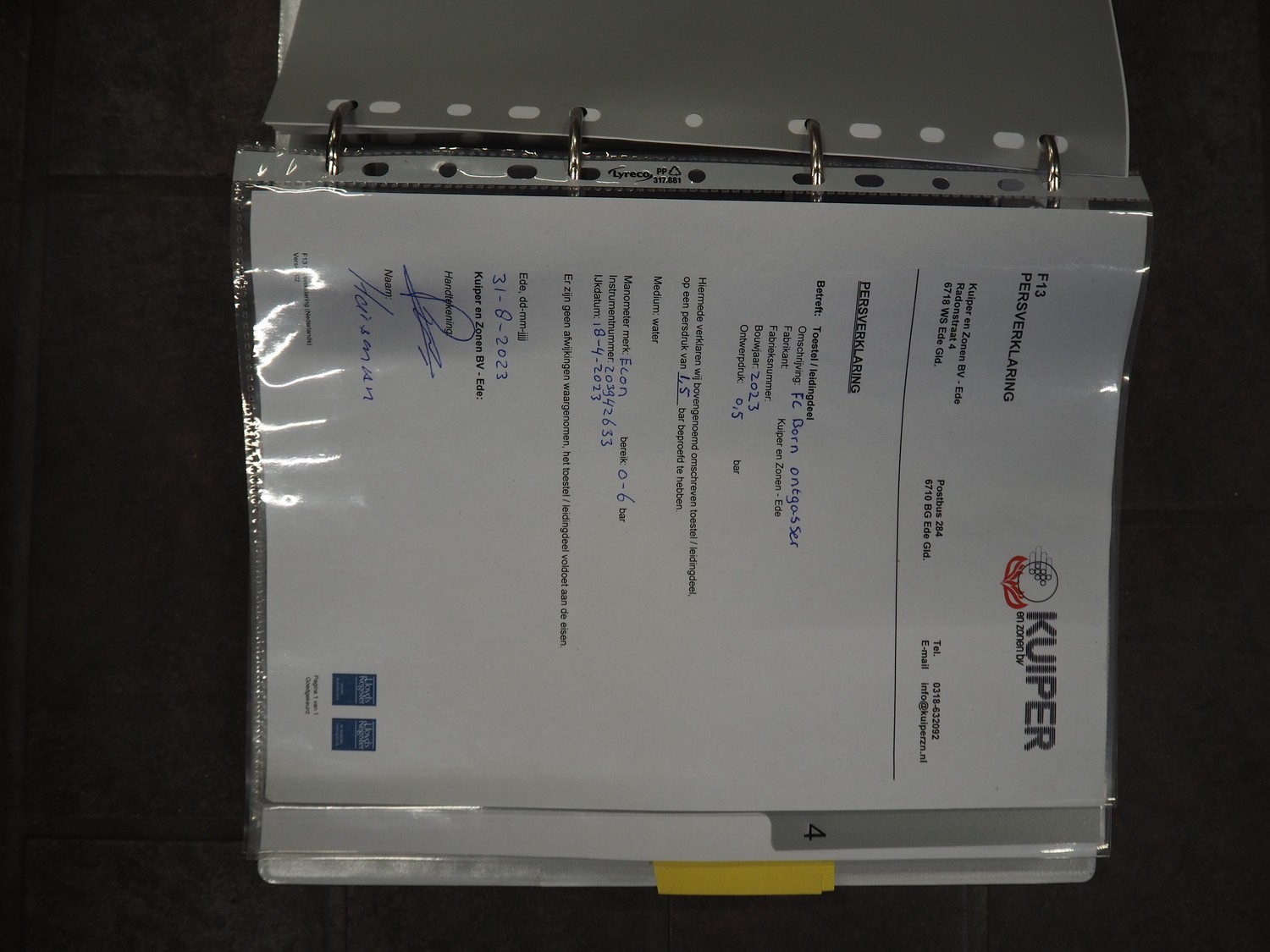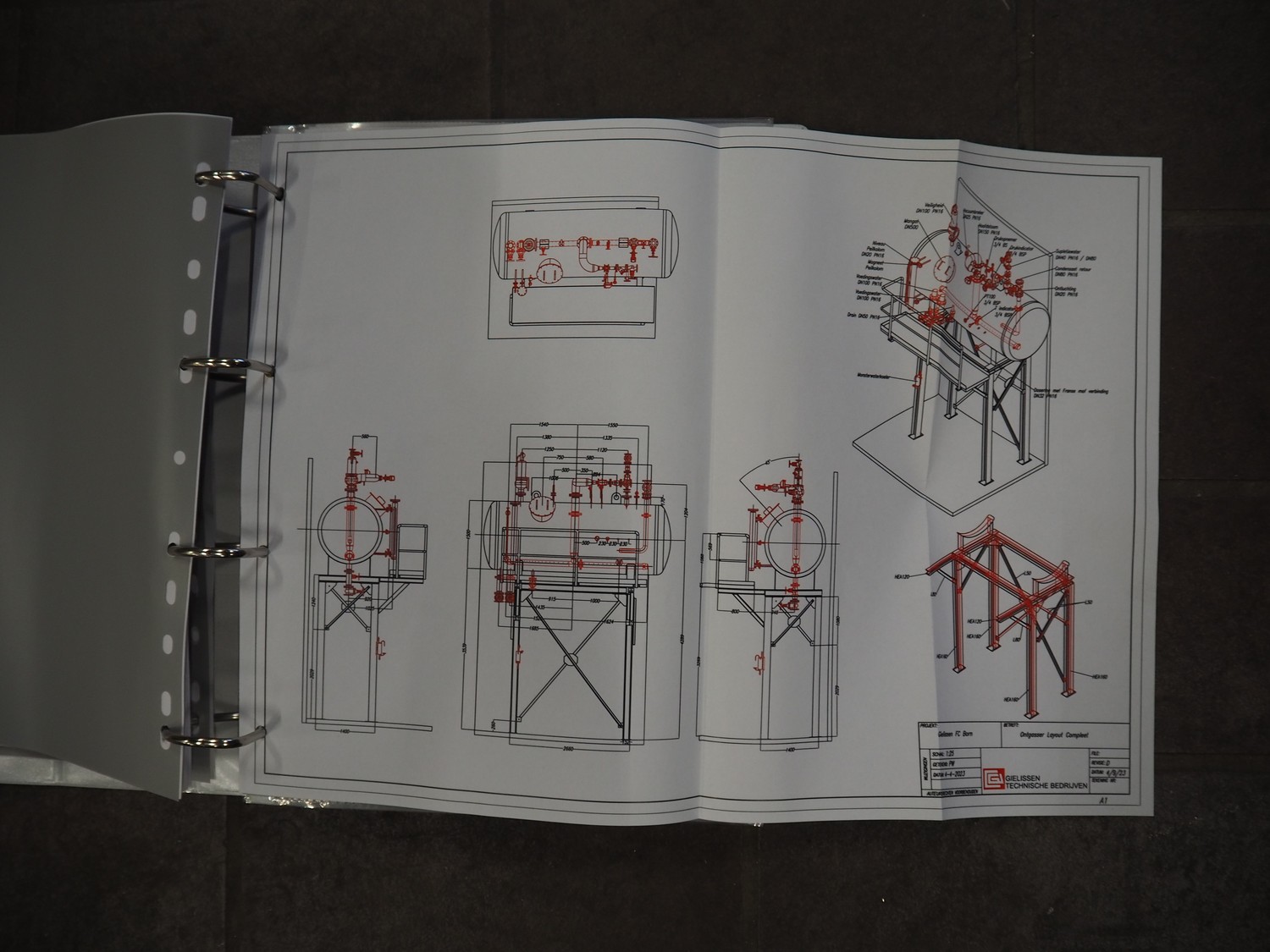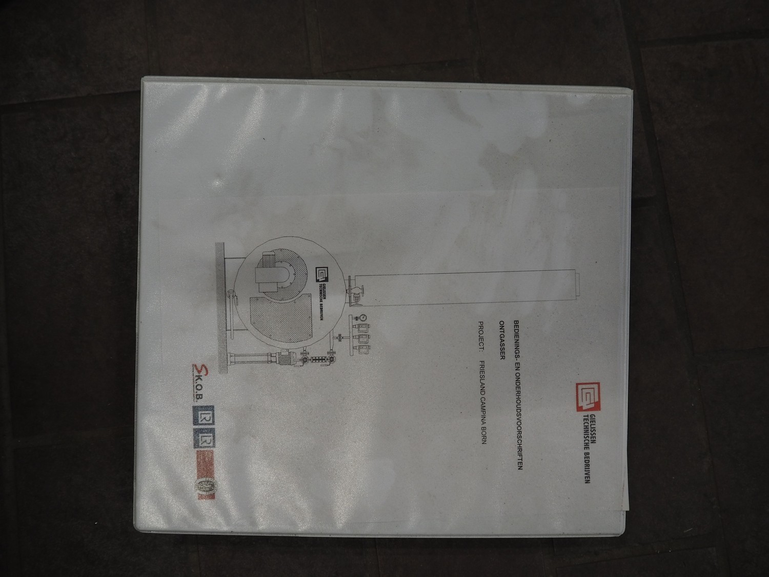 Gielissen degassing installation, year of construction: 2023, consisting of tank, dimensions: ø 1650 mm x 4300 mm, 2 Duijvelaar Pompen B.V. centrifugal pumps, type: DPVCF 10/21 B, 2 KSB refrigerant pumps, total dimensions: 4300 mm x 2500 mm x 5500 mm.