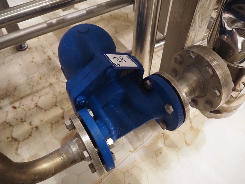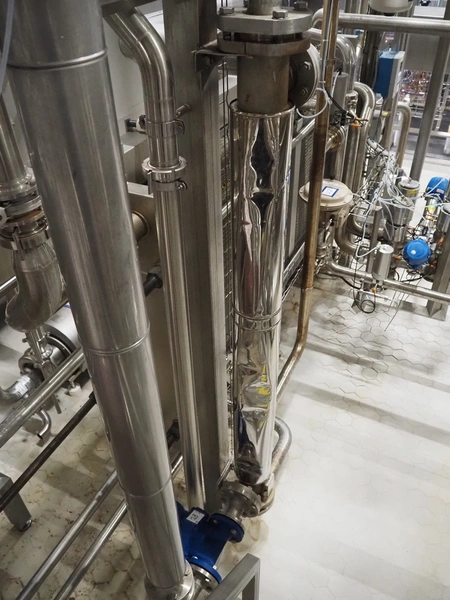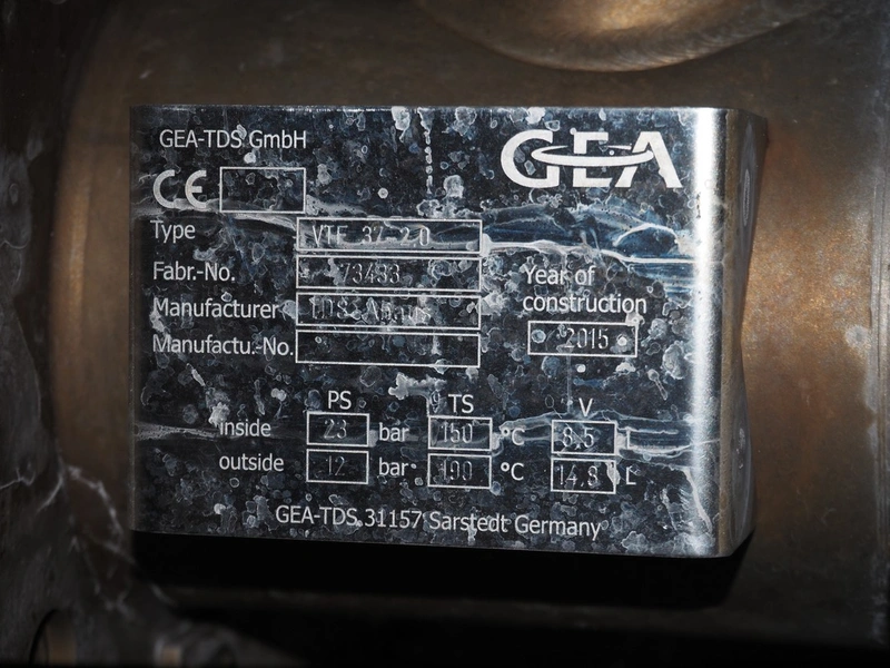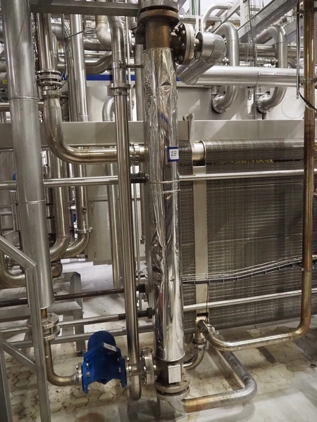 Steam valve with GEA TDS GmbH tube heat exchanger, type: VTE 39-2.0, dimensions: 600 mm x 500 mm x 2060 mm.
