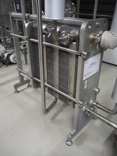 APV cream pasteurizer, type: H17, serial number: 39343, year of construction: 1995, capacity: 3.5 m³/h, dimensions: 1500 mm x 700 mm x 1400 mm.