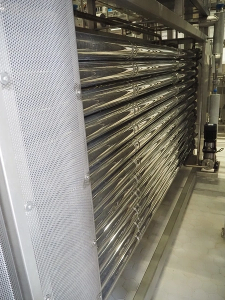 Tube sterilizer, capacity: 5 tons per hour, dimensions: 3000 mm x 1500 mm x 3100 mm.