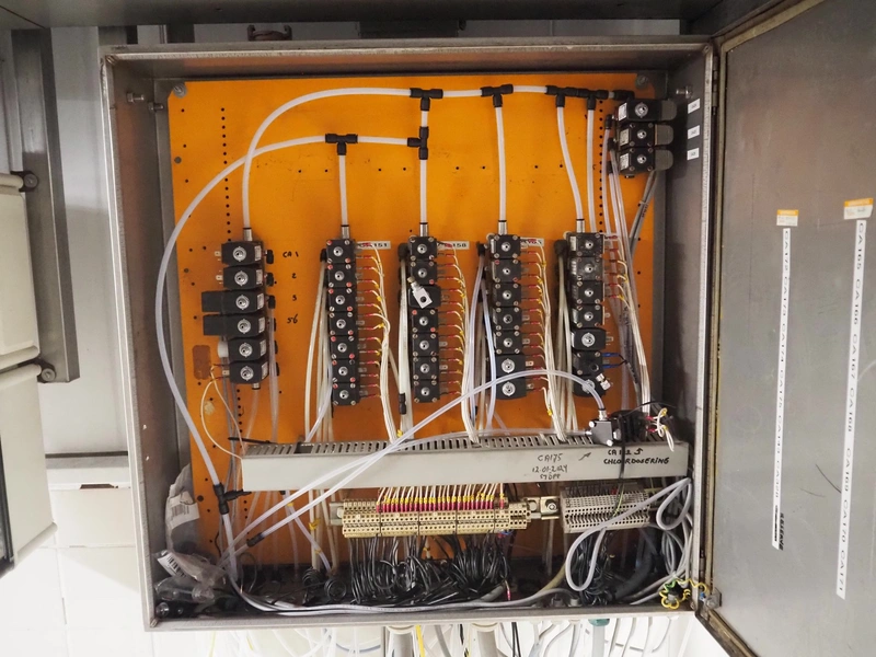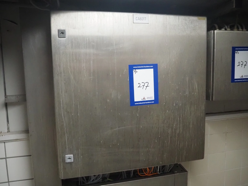 3 s/s control cabinets, dimensions: 220 mm x 750 mm x 750 mm, 300 mm x 755 mm x 755 mm, 200 mm x 370 mm x 370 mm.