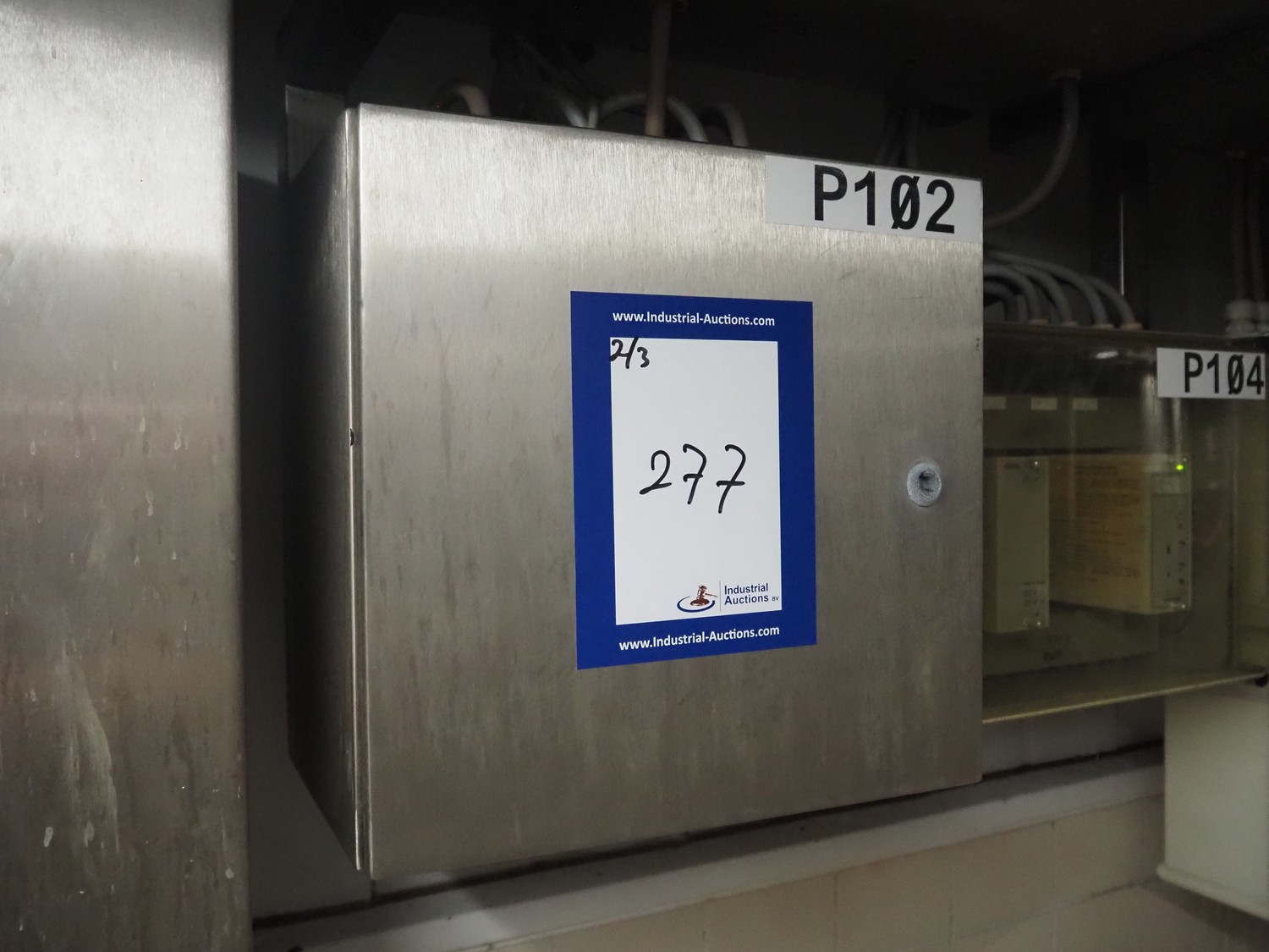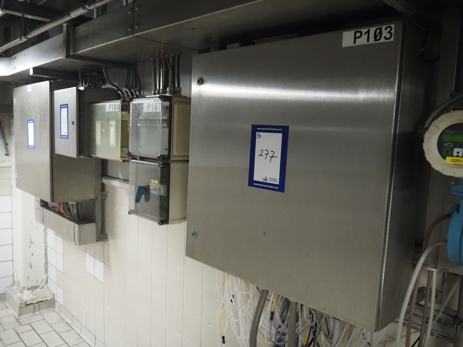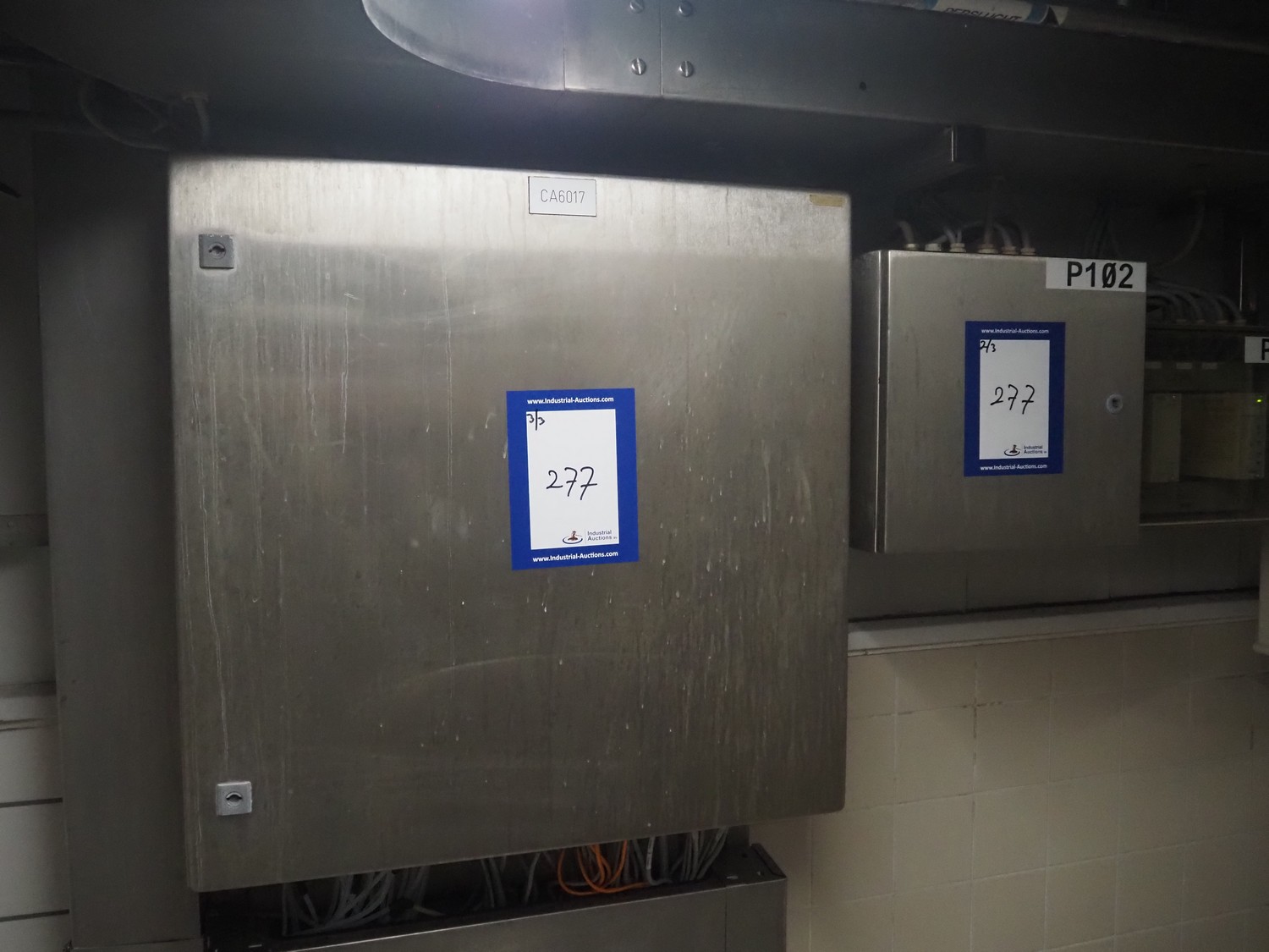 3 s/s control cabinets, dimensions: 220 mm x 750 mm x 750 mm, 300 mm x 755 mm x 755 mm, 200 mm x 370 mm x 370 mm.