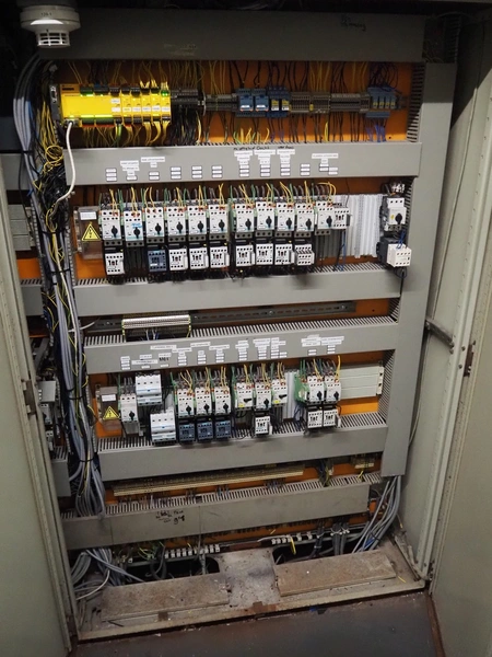 Rittal switch cabinet for cheese warehouse and loading/unloading line, dimensions: 5600 mm x 400 mm x 1800 mm.