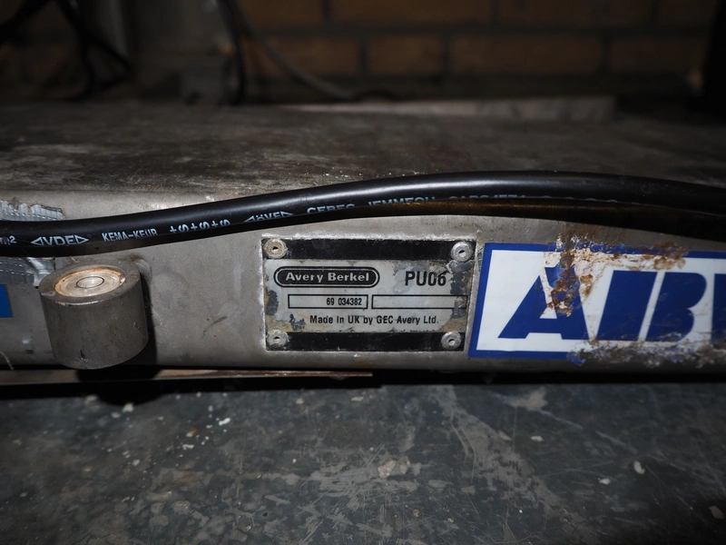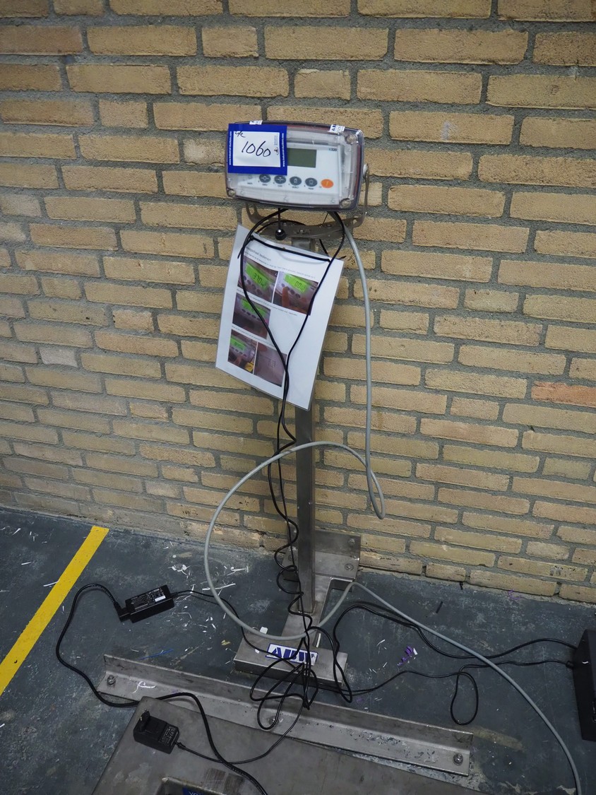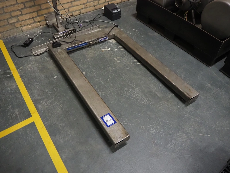 Avery Berkel pallet weighing scale, number: 69 034382, maximum weight: 1500/2000 kg, minimum weight: 10/20 kg, e=: 0.5/1 kg, dimensions: 1300 mm x 850 mm x 800 mm.