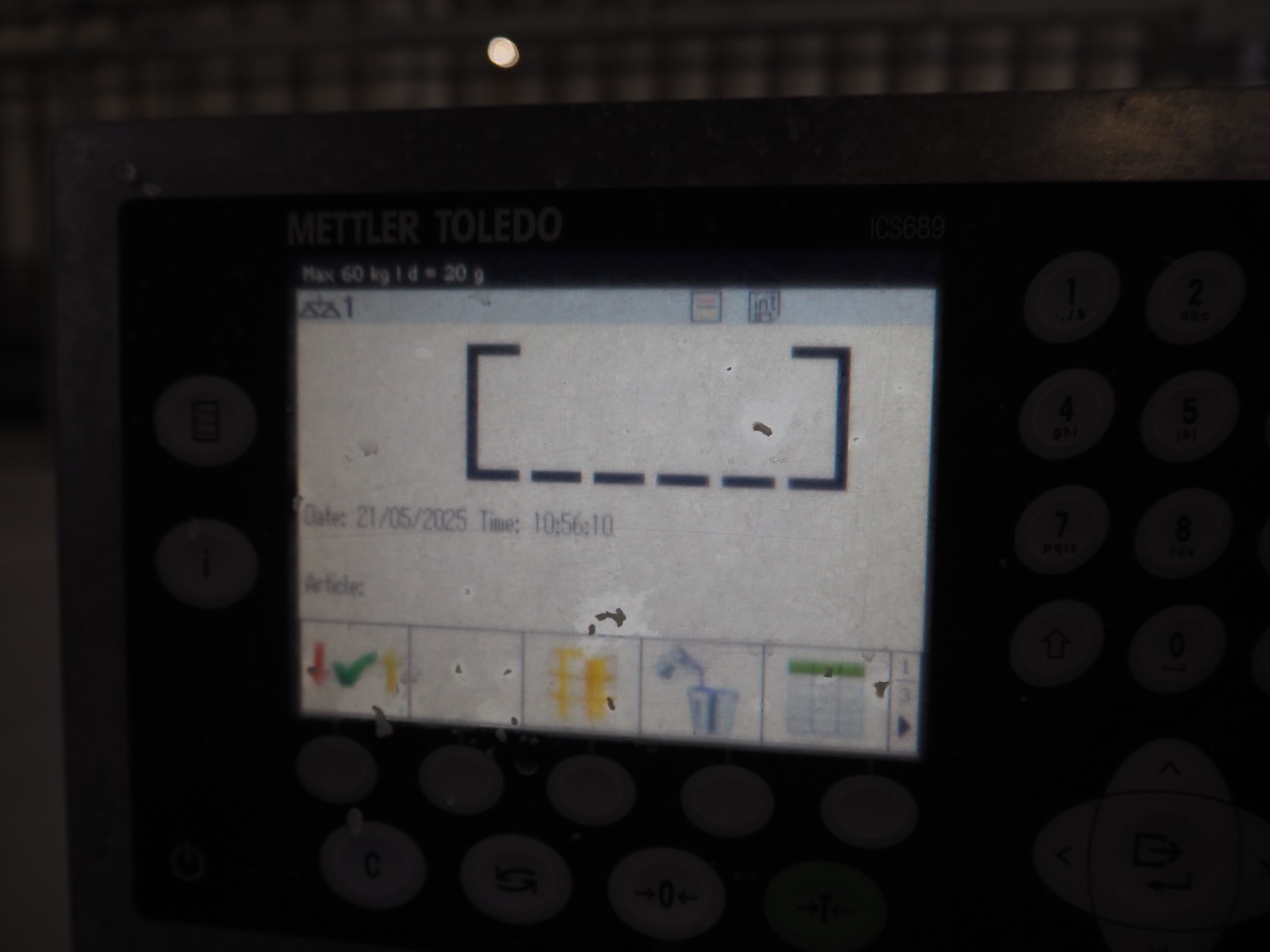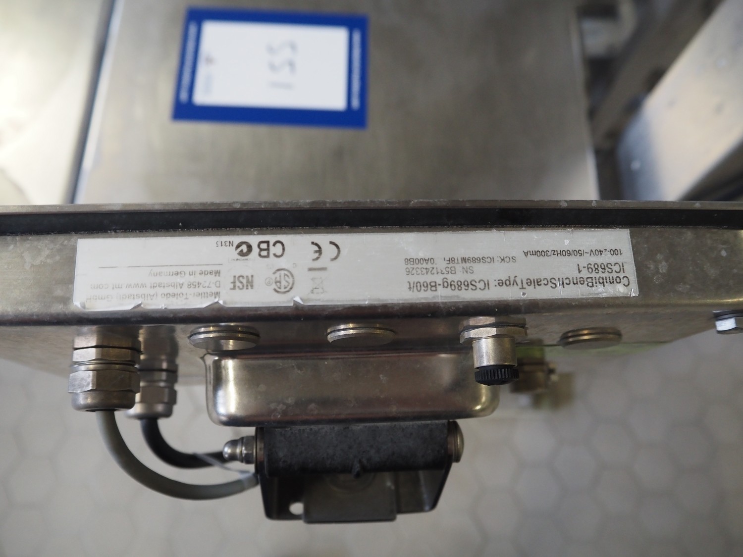 Mettler Toledo weighing scale, model: CombiBenchScale, type: ICS689g-B60/t, serial number: B531243326, 100-240 V, 50/60 Hz, 300mA, dimensions: 560 mm x 500 mm x 1250 mm.